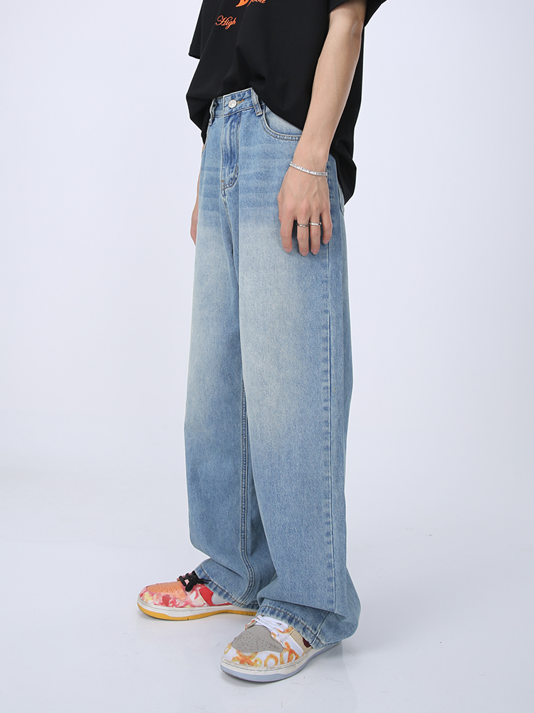 Voguo Relay 原创男女潮牌韩版宽松百搭直筒阔腿长蓝色中腰牛仔裤