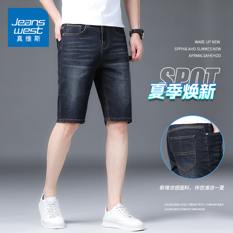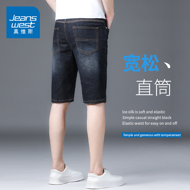 KZH真维斯夏季薄款牛仔短裤男宽松直筒中裤潮流透气休闲五分裤子