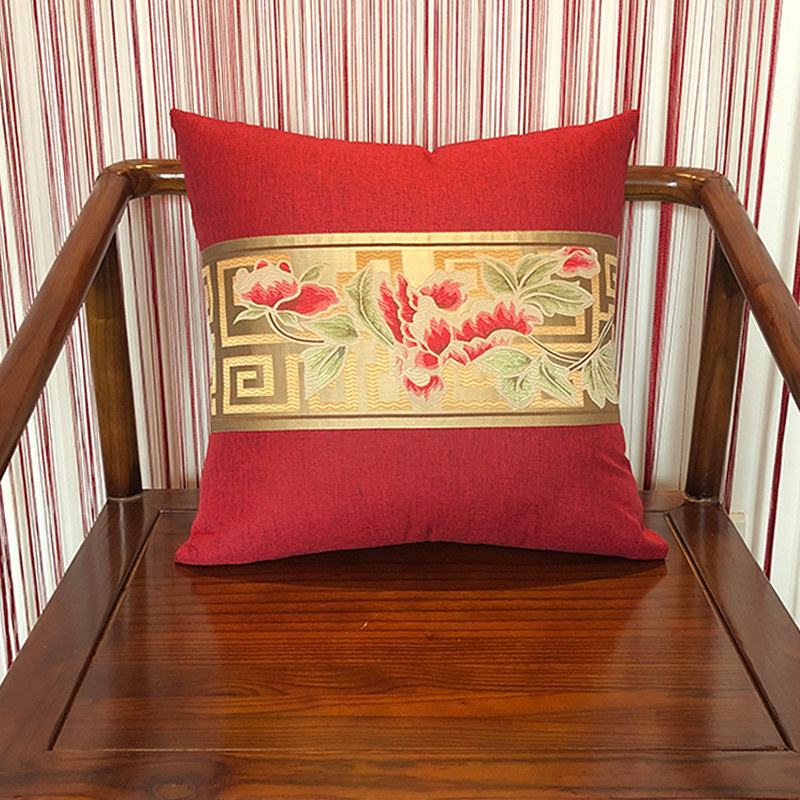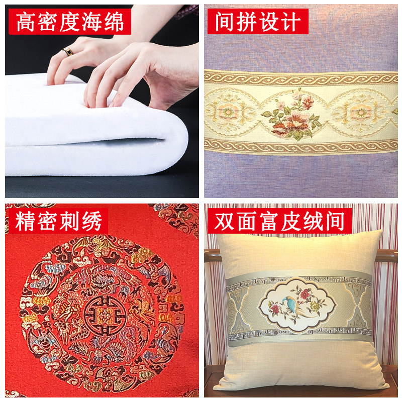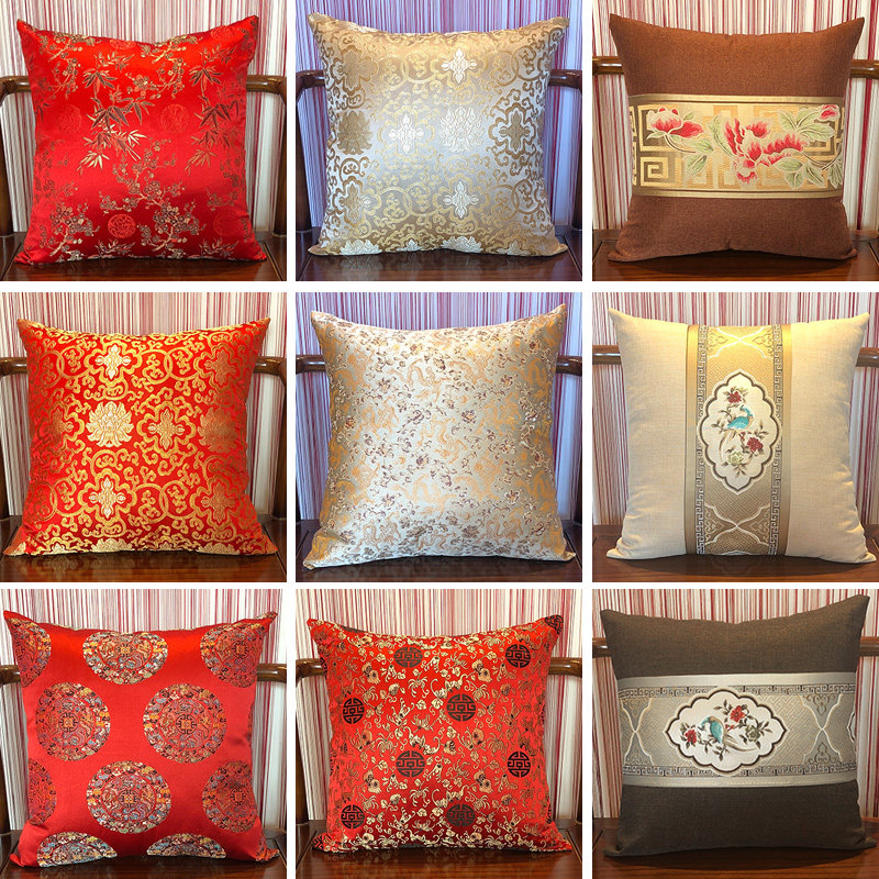 中式抱枕红木实木沙发靠垫套中国风腰枕高档古典绸缎扶手枕含芯
