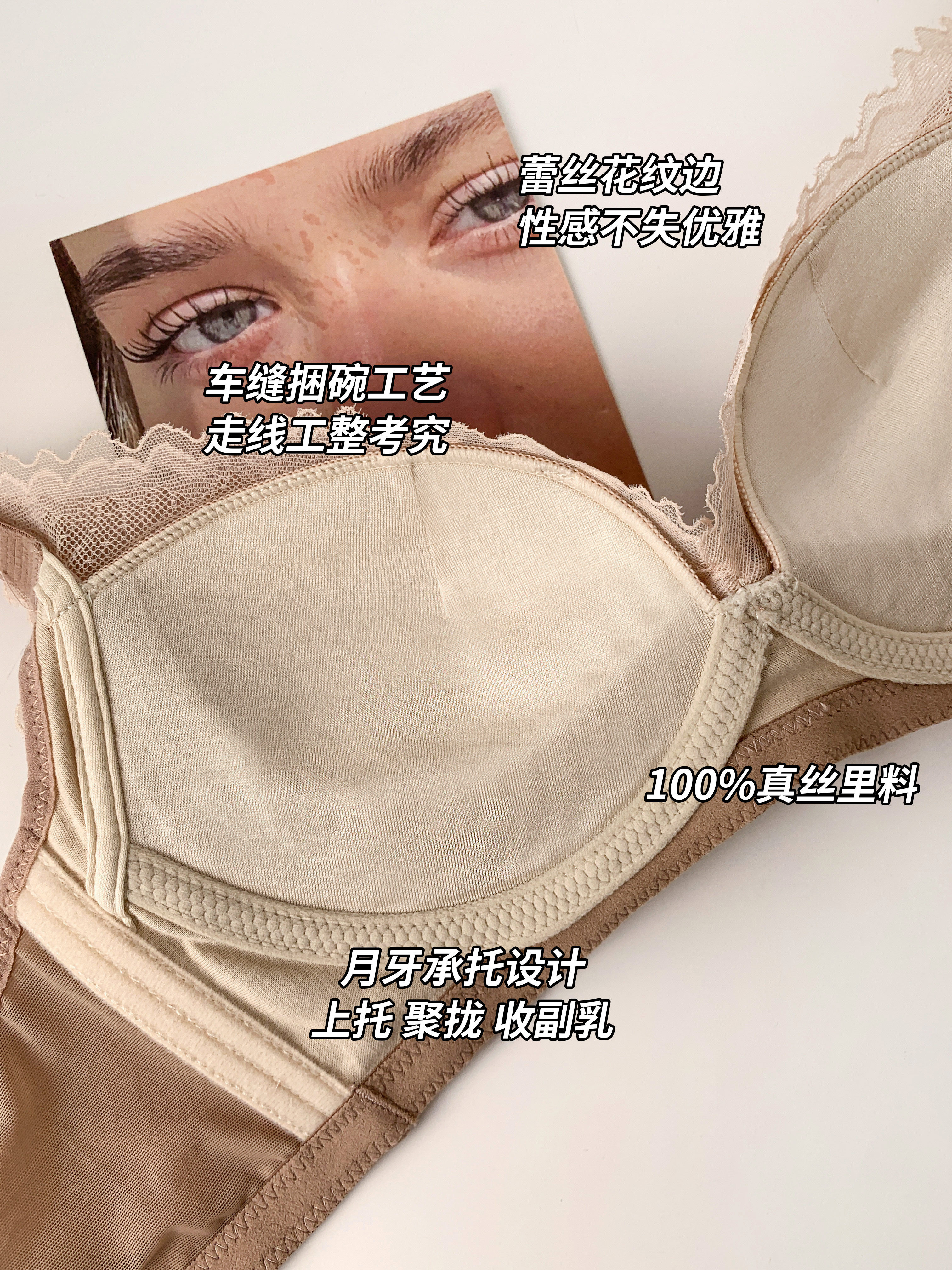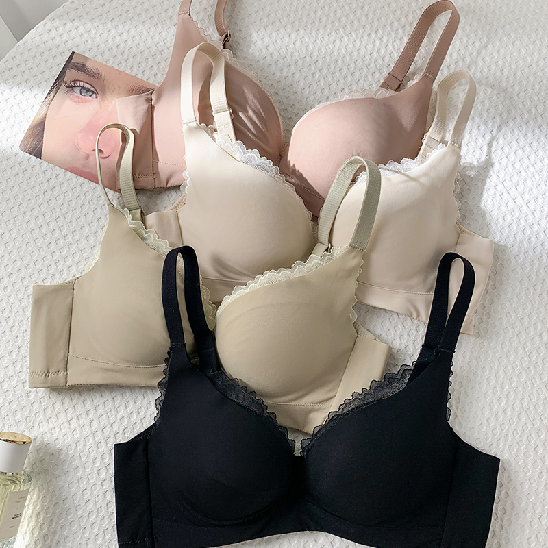 日本无痕100%真丝桑蚕丝内衣女小胸聚拢收副乳防下垂无钢圈文胸