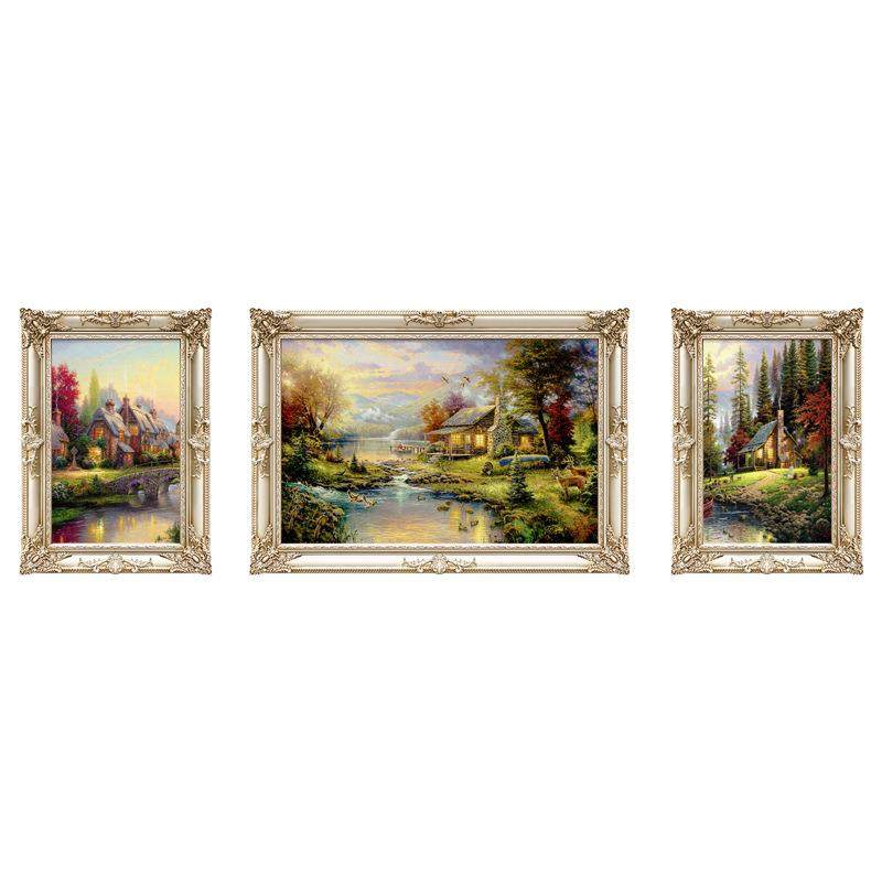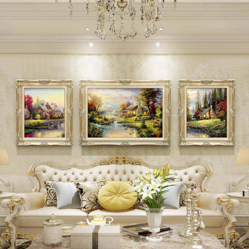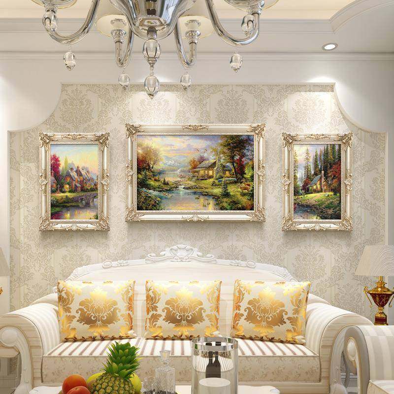 欧美风格客厅装饰画三联风景大气复古墙画简欧挂画欧式油画