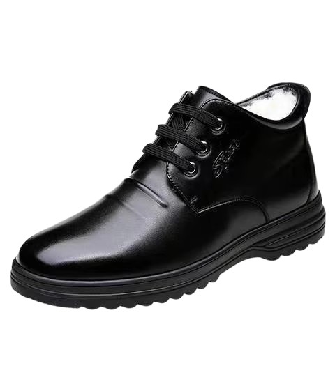 冬季加绒加厚男士棉皮鞋厚底防滑男休闲高帮保暖棉鞋中老年爸爸鞋