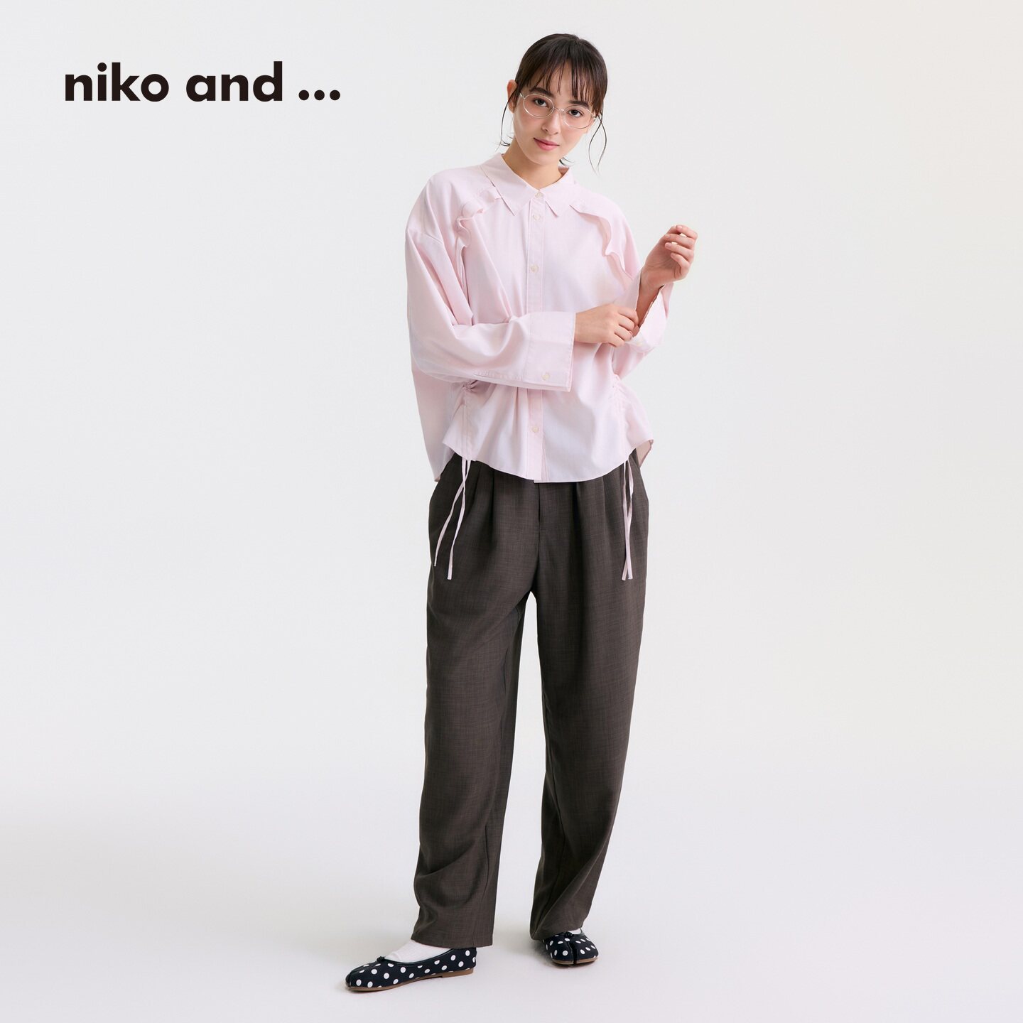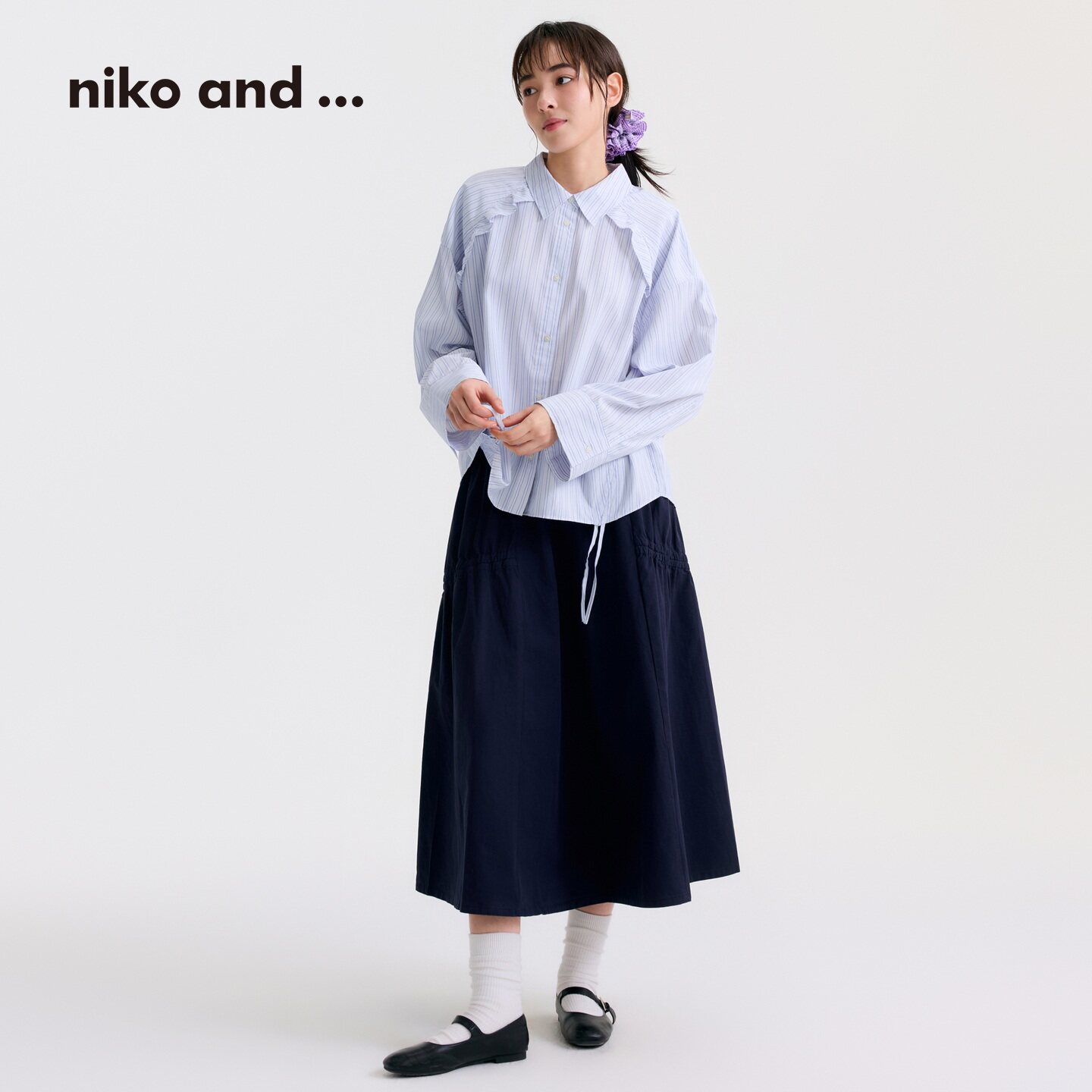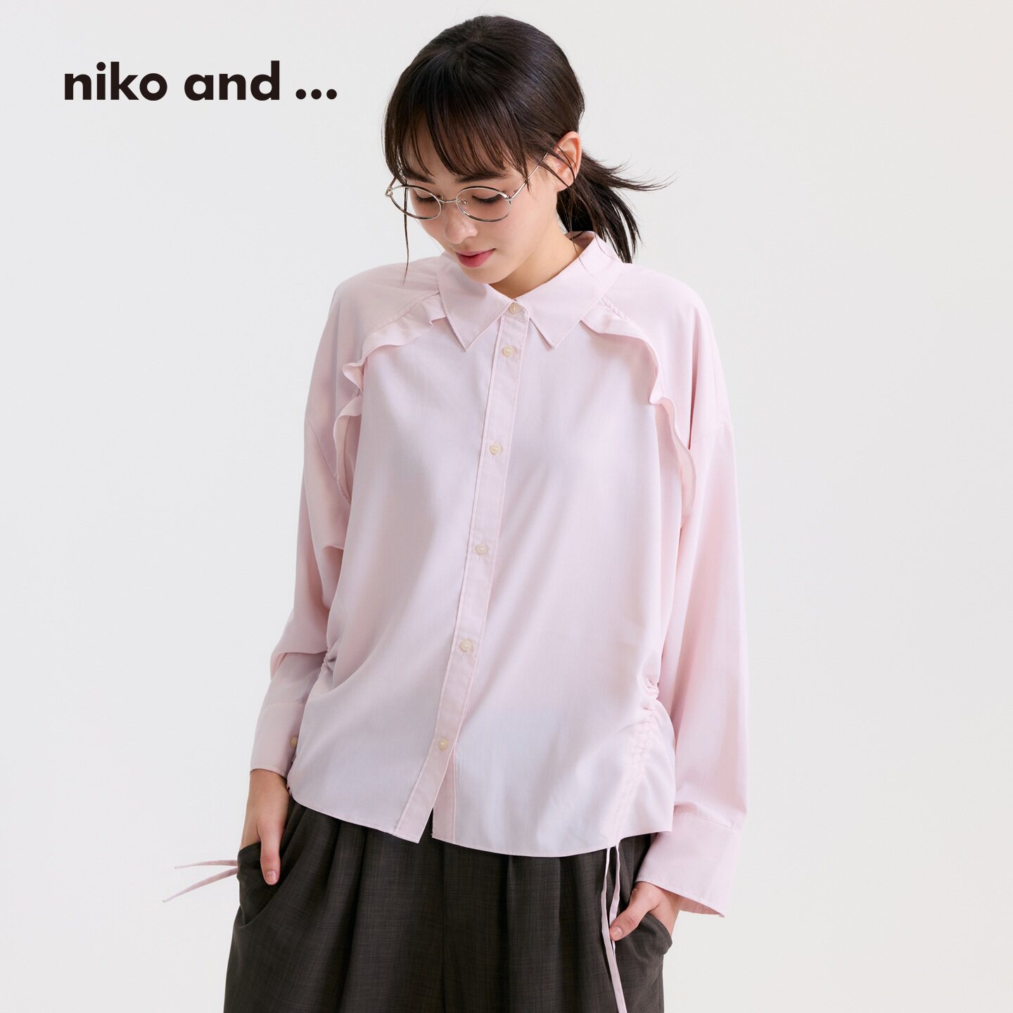 niko and ...衬衫女2026春季新款随性木耳边抽绳飘带上衣588965