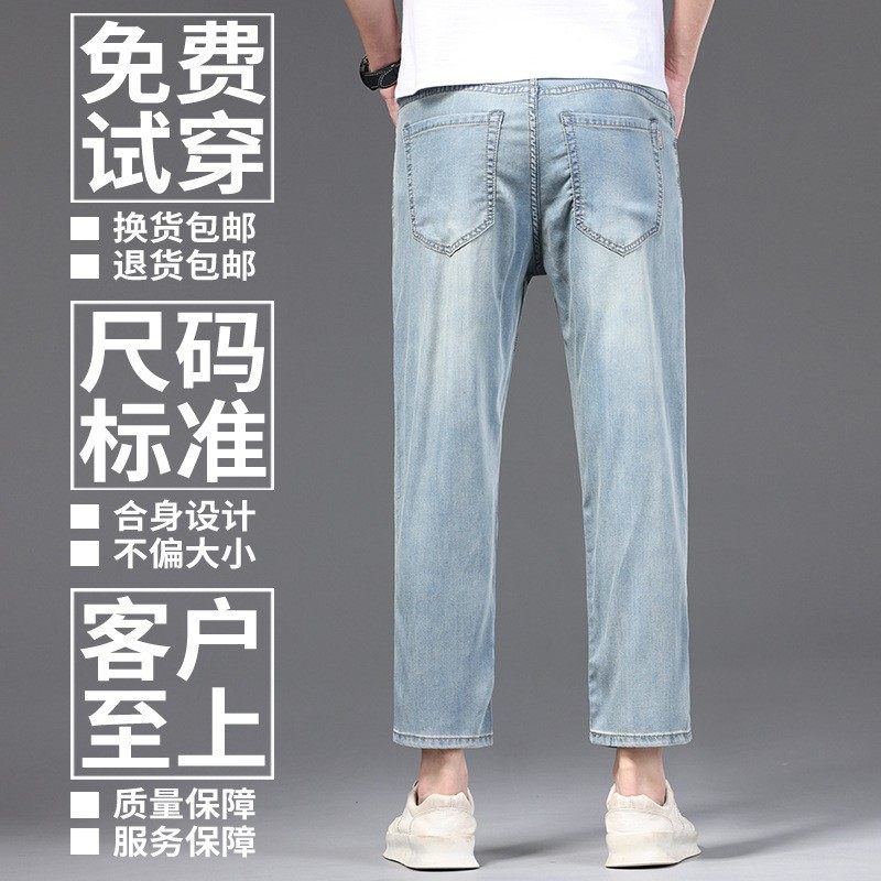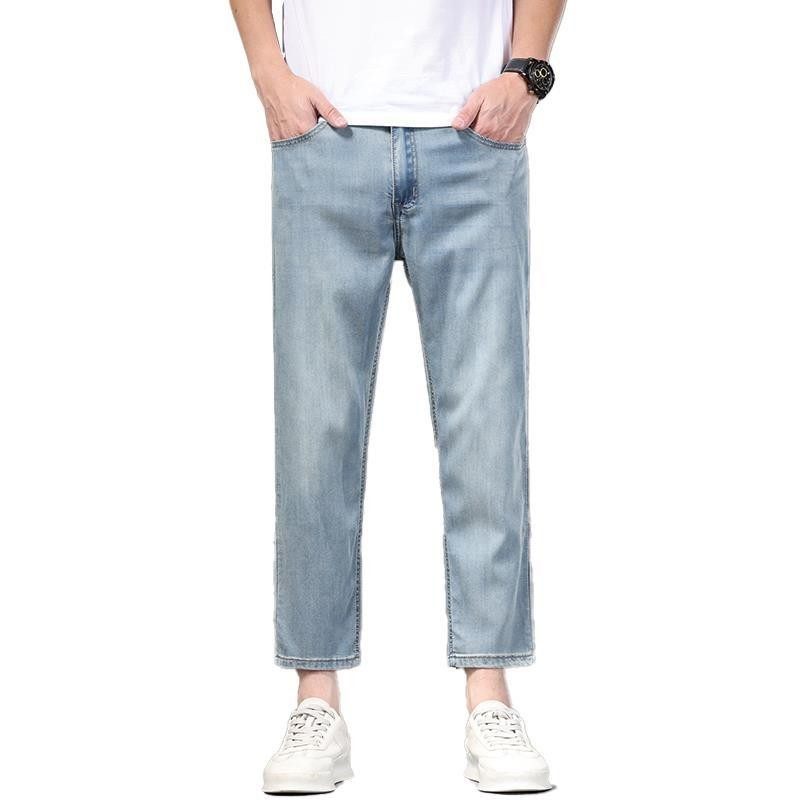 矮个子八分牛仔裤男士宽松直筒2025夏季薄款天丝复古蓝休闲裤89分