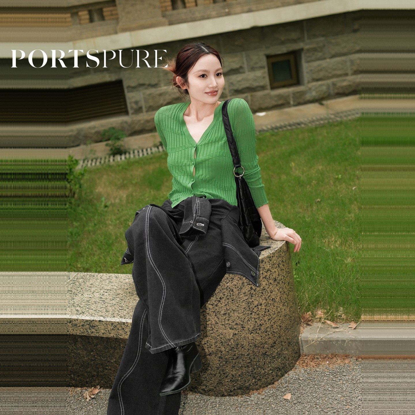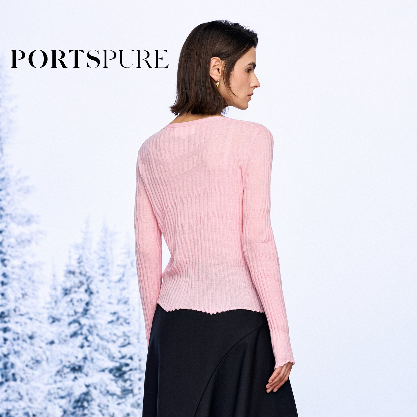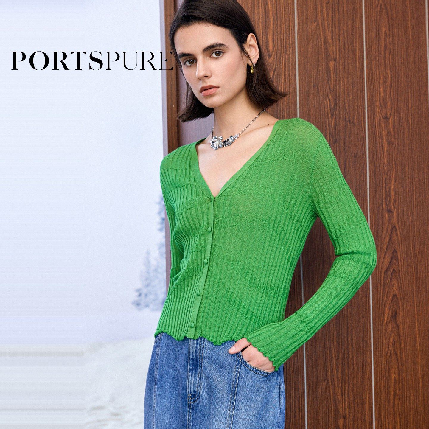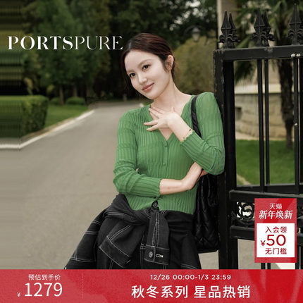 商场同款 宝姿PORTSPURE女装2025秋冬新品百搭V领肌理针织开衫
