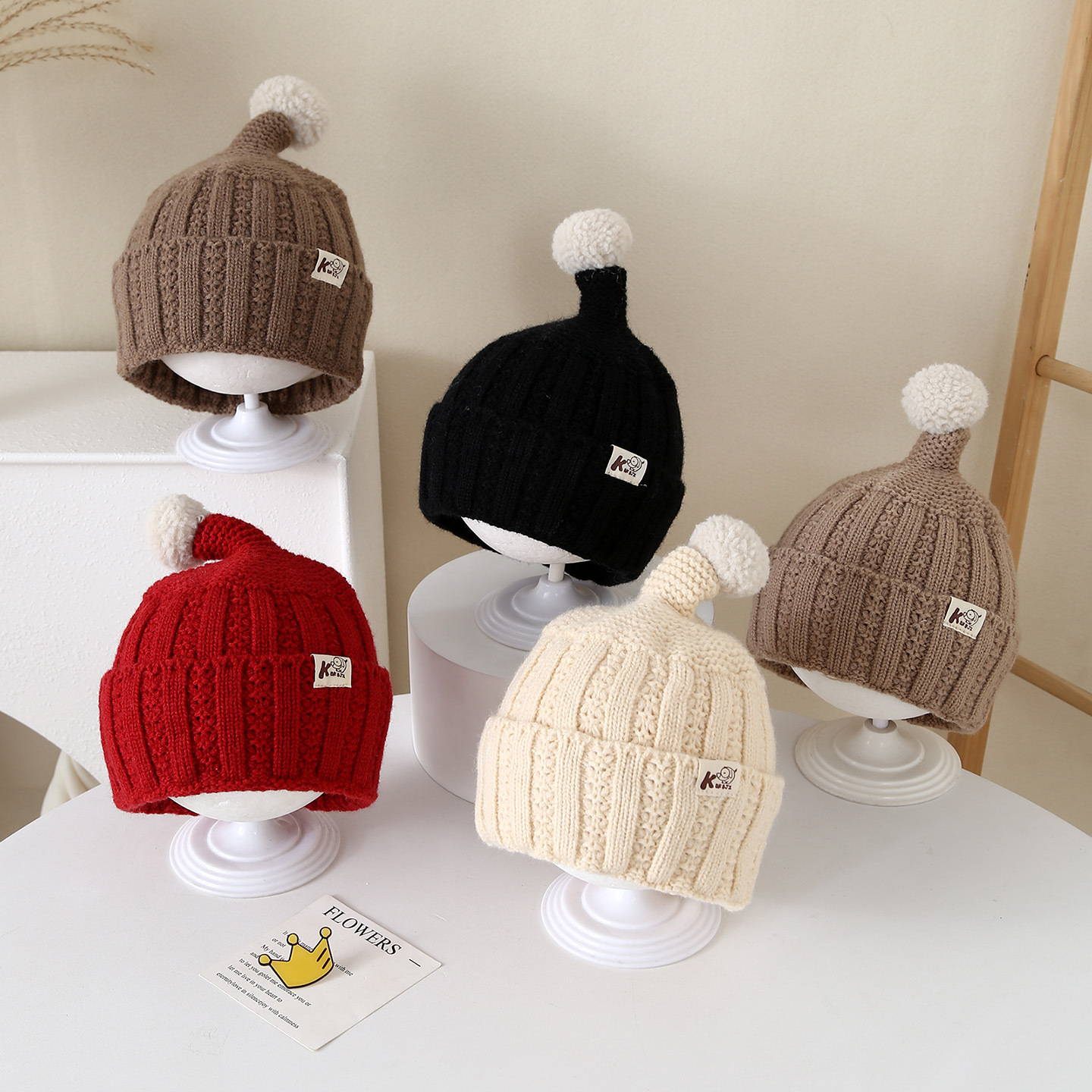 儿童帽子秋冬季男女童宝宝针织毛线帽冬天外出防风保暖帽加绒