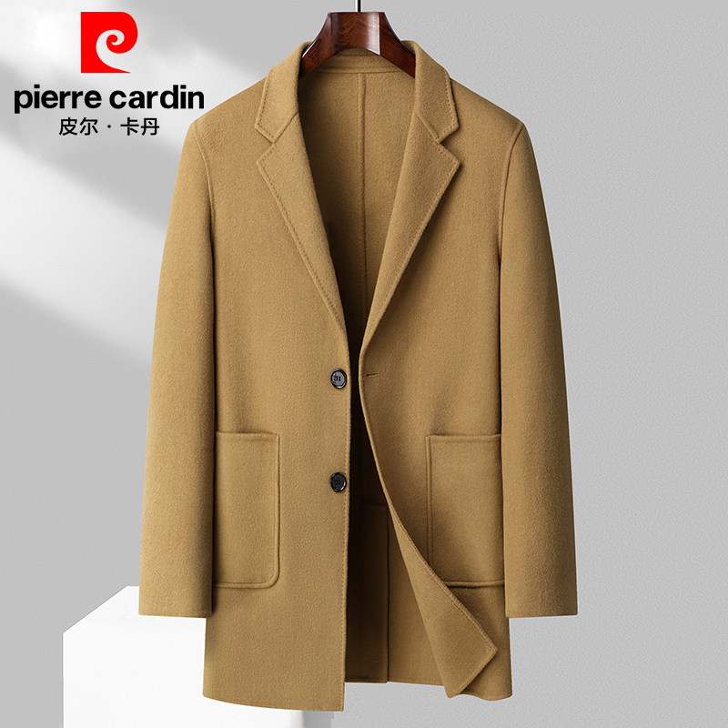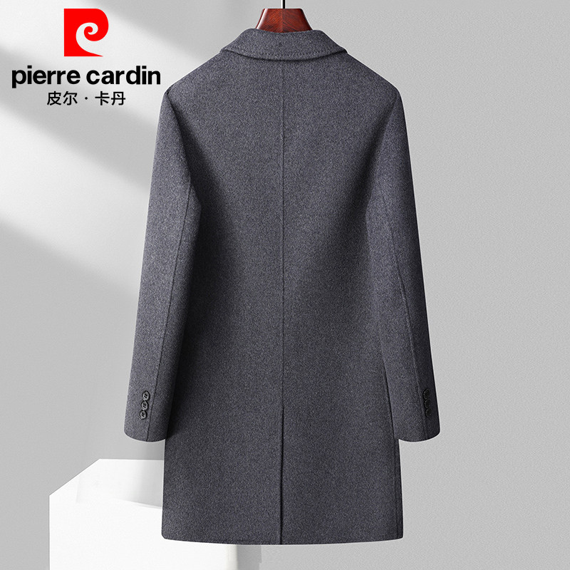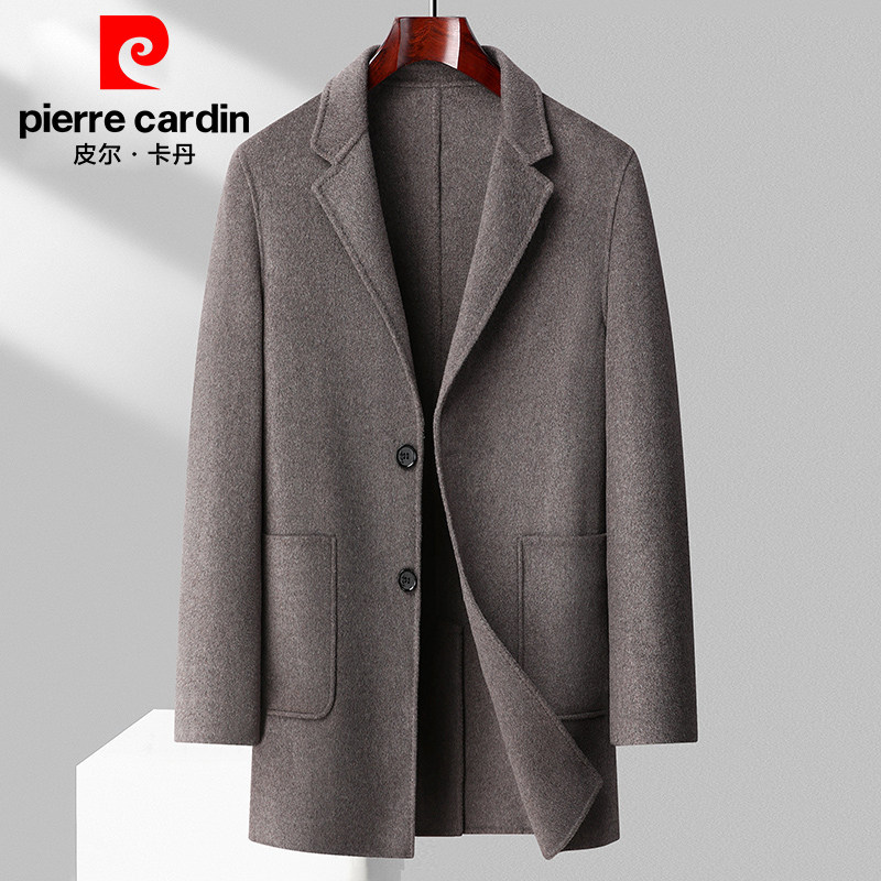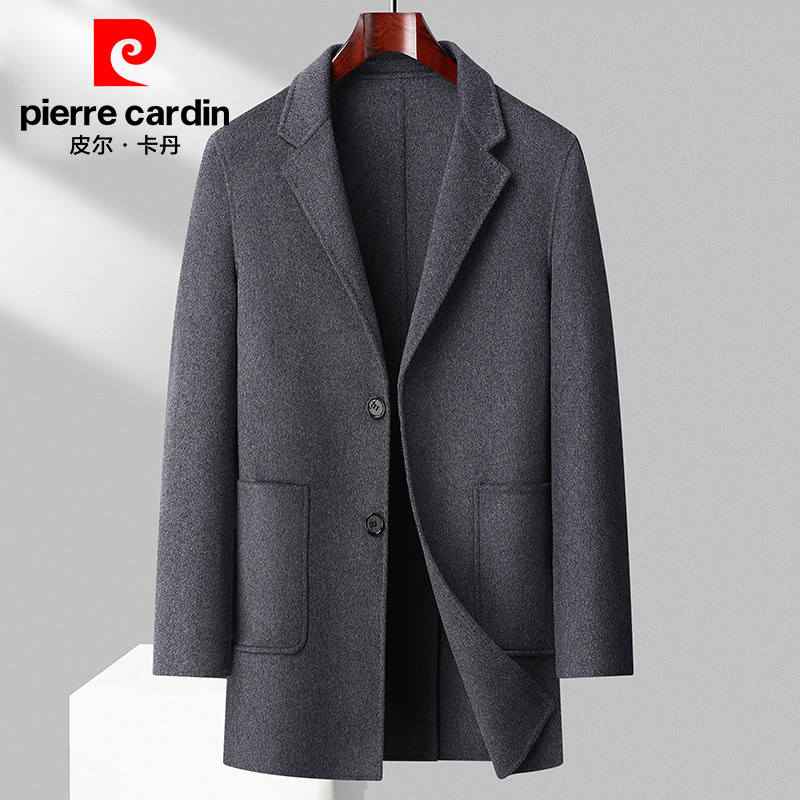 皮尔卡丹中长款西装领毛呢男士羊毛双面羊绒大衣休闲呢子风衣外套