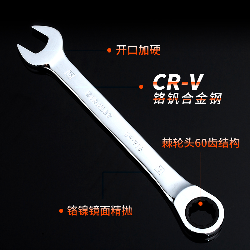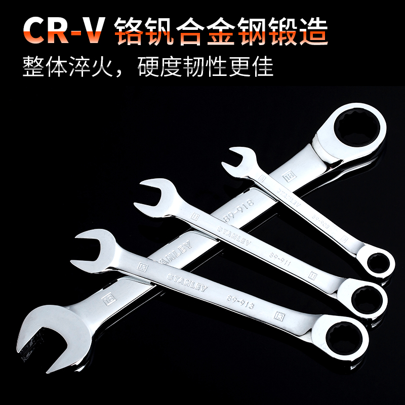 史丹利公制精抛光铬钒钢8-19MM棘轮梅花开口扳手两用汽修快扳工具