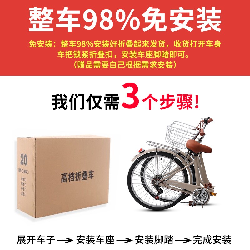夙凰折叠自行车女式通勤轻便实心胎成人男上班代步24寸26学生单车