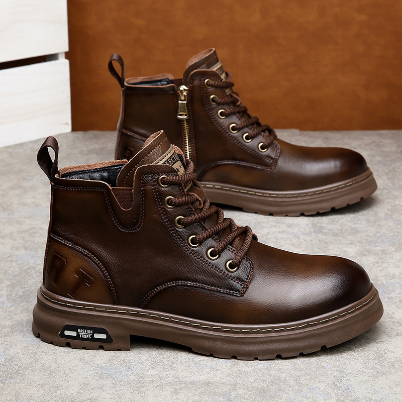 马丁靴男款2025新款秋冬季真皮防水工装靴男士加绒保暖高帮皮靴子