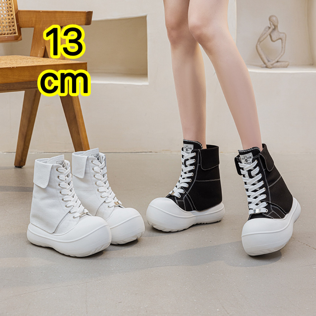 13cm小个子内增高帆布鞋休闲厚底女单鞋松糕鞋超高跟女鞋潮大头鞋