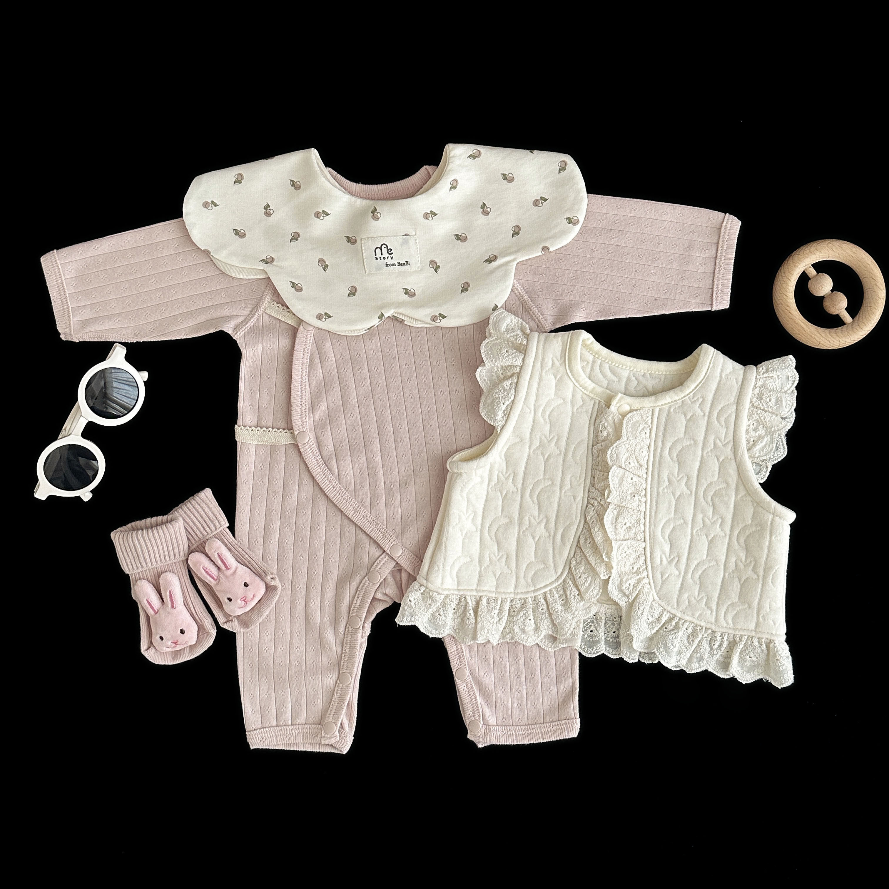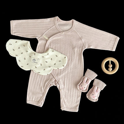 婴儿连体衣服秋冬季满月女宝宝纯棉哈衣新生儿粉色家居服睡衣套装