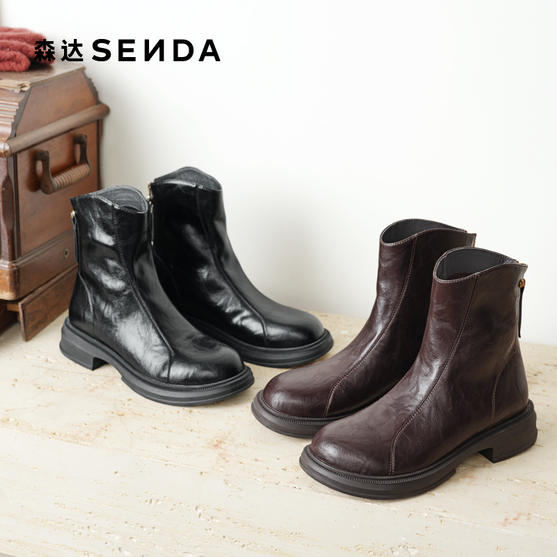 森达2025冬新圆头增高休闲弹力靴