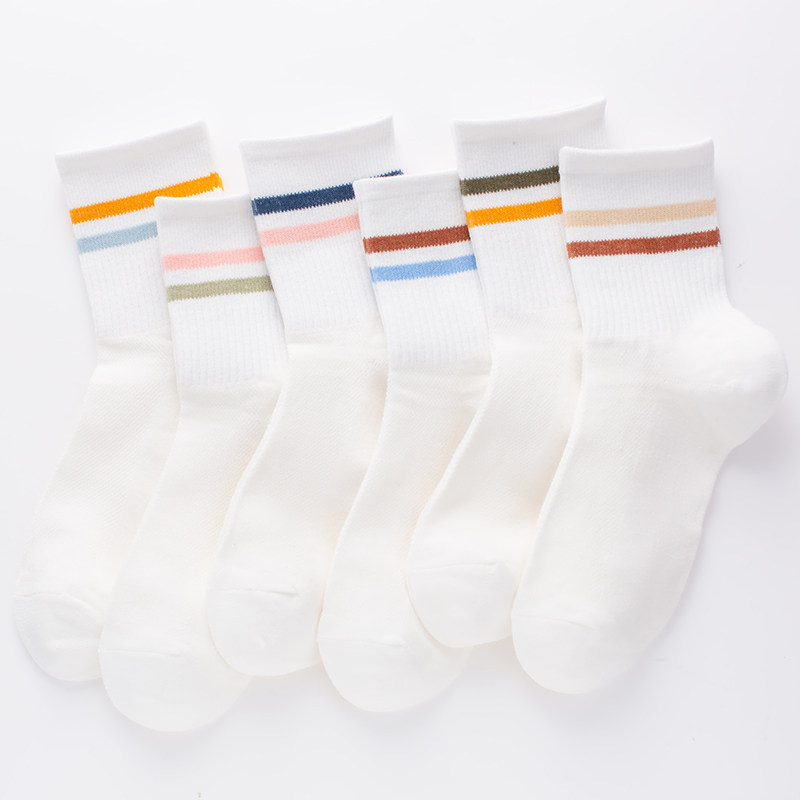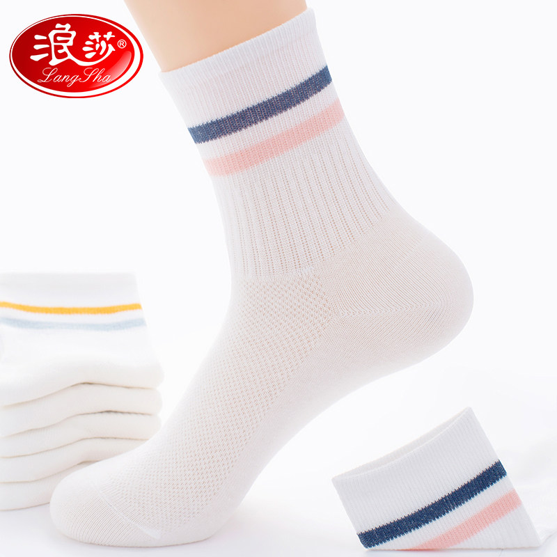 浪莎袜子女夏季薄款中筒100%正品纯棉防臭吸汗透气白色学生ins潮