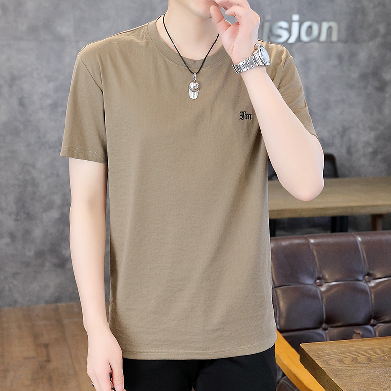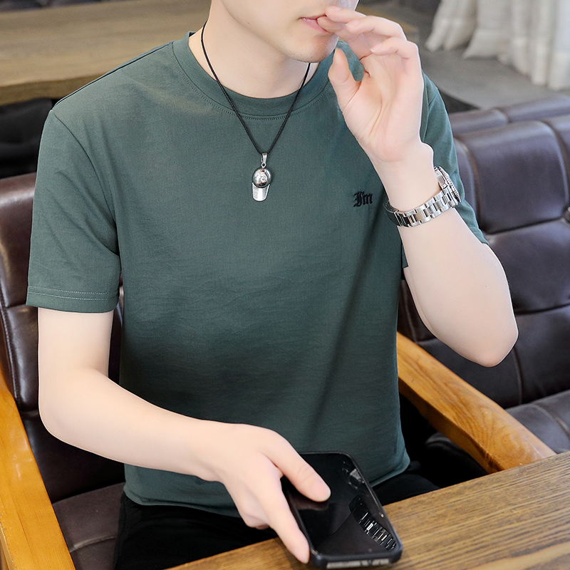 夏季短袖t恤男士休闲圆领上衣2025新款男装透气冰丝棉麻半袖体恤