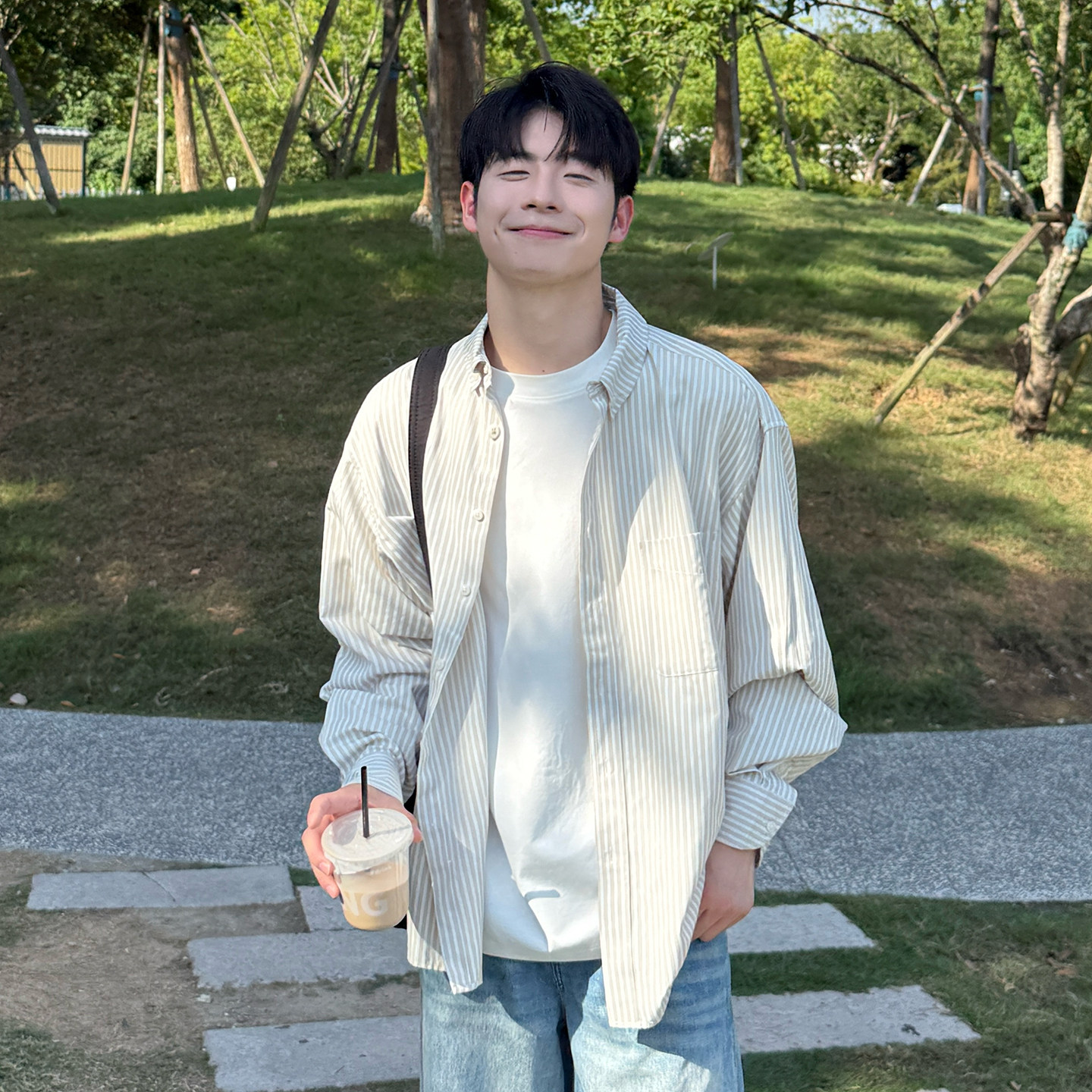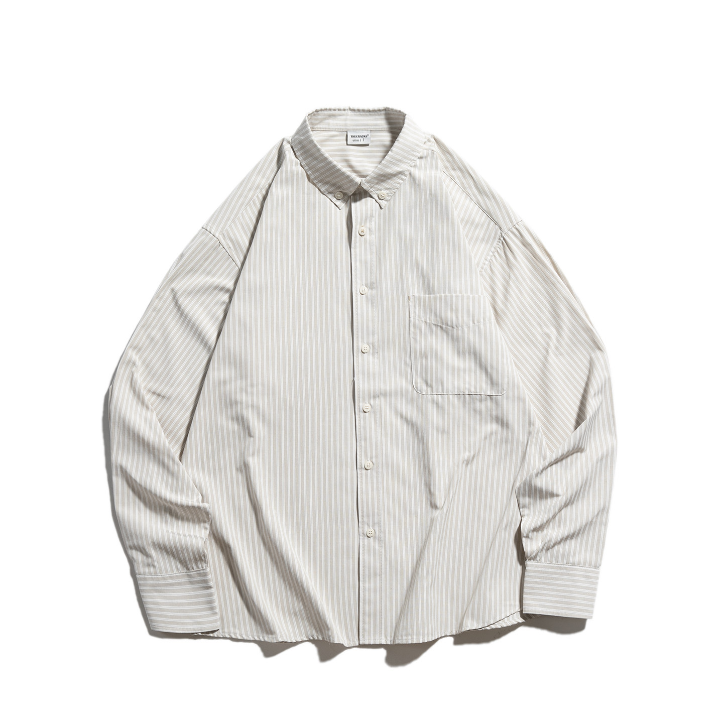 卡其色翻领条纹衬衫长袖男生2025新款秋季宽松休闲口袋衬衣外套