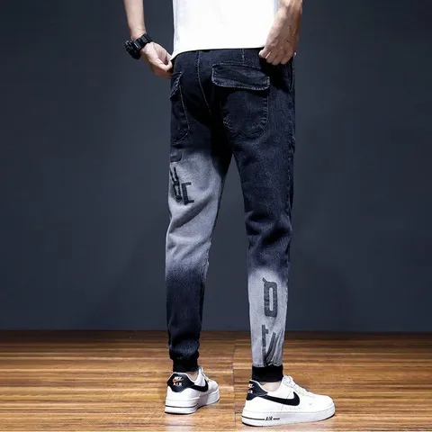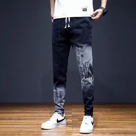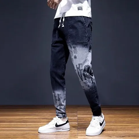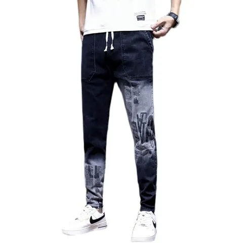 夏季春秋款男款哈伦裤子牛仔裤韩版黑色男士潮牌男小脚裤九分修身