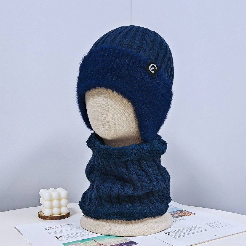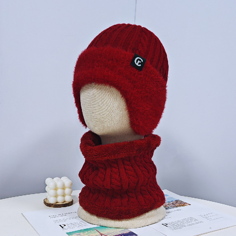 红豆中老年人帽子围脖男冬针织毛线帽加厚老人爷爷护耳保暖爸爸防