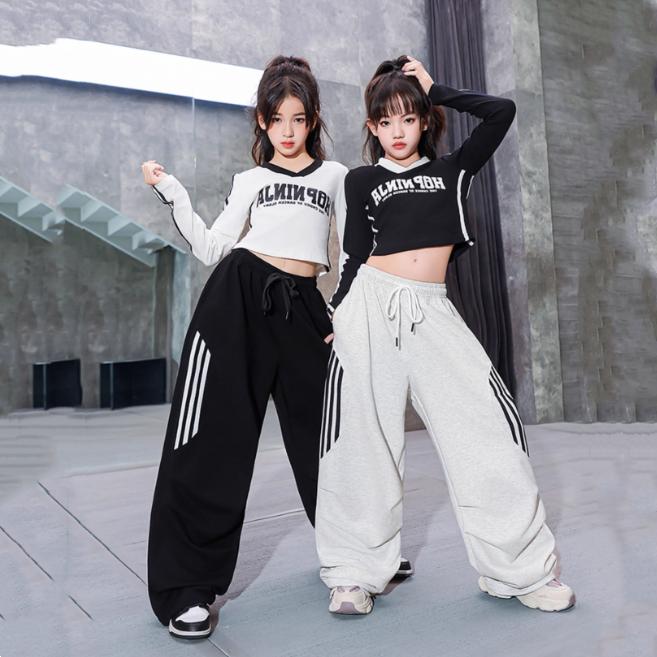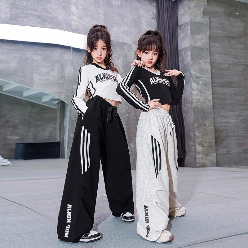 儿童街舞套装女童jazz美式长袖V领T恤球衣爵士舞服表演出潮