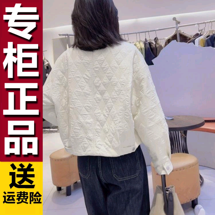 原版韩版菱格圆领休闲外套时尚宽松女2025冬新款休闲棉服短外套