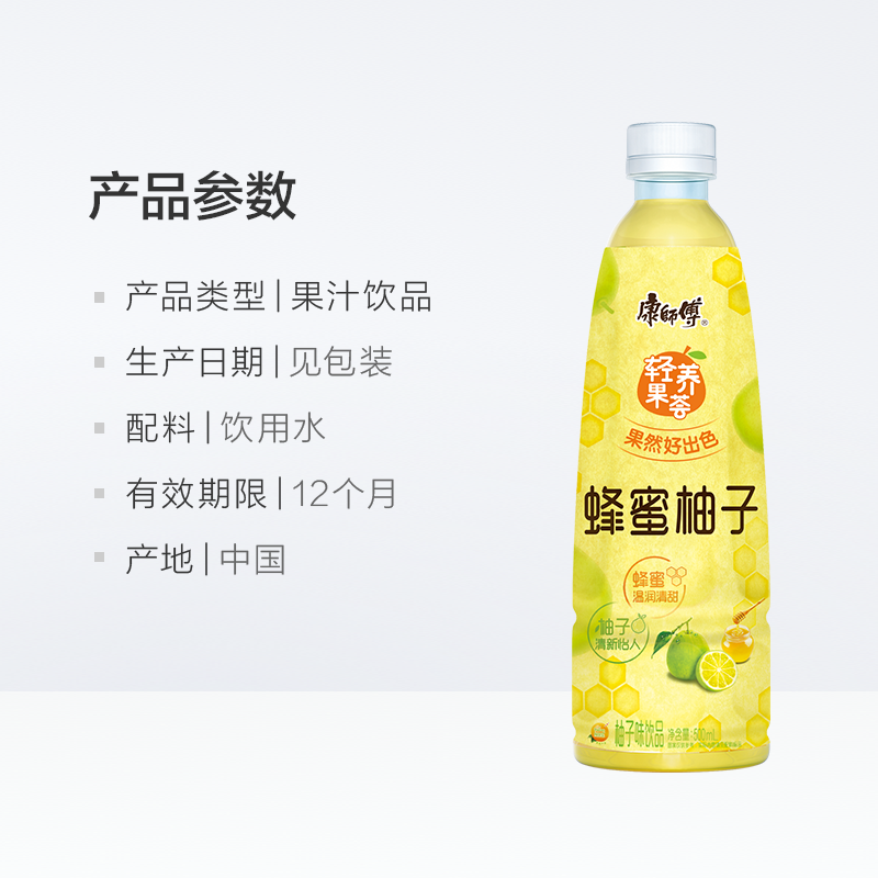 康师傅轻养果荟蜂蜜柚子茶500ml*15瓶装整箱果味水果饮品网红饮料
