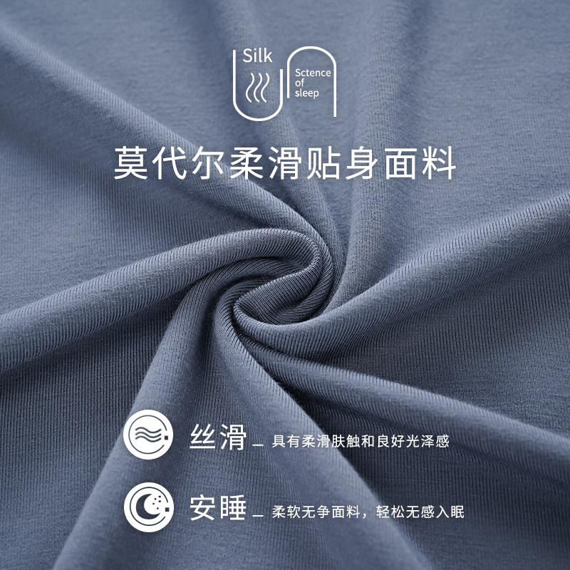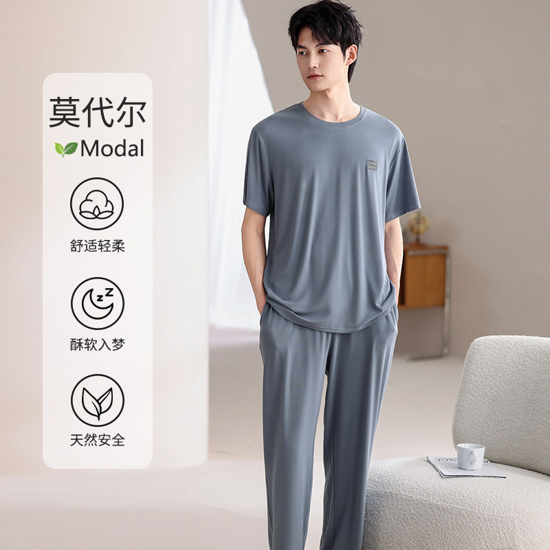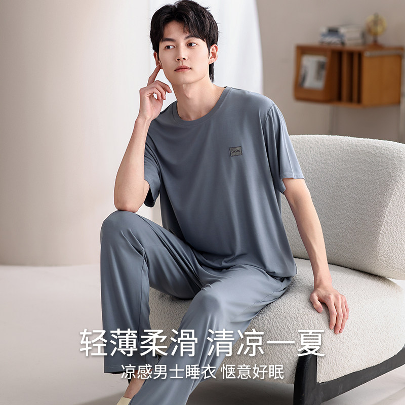 浪莎睡衣男夏季凉感莫代尔短袖长裤可外穿休闲圆领纯色家居服套装