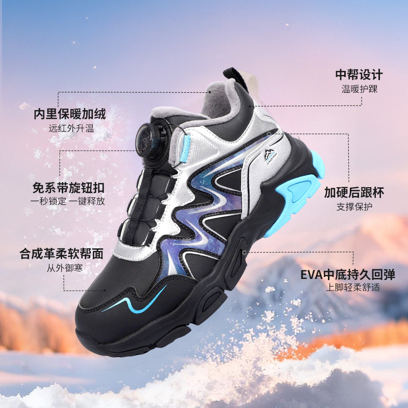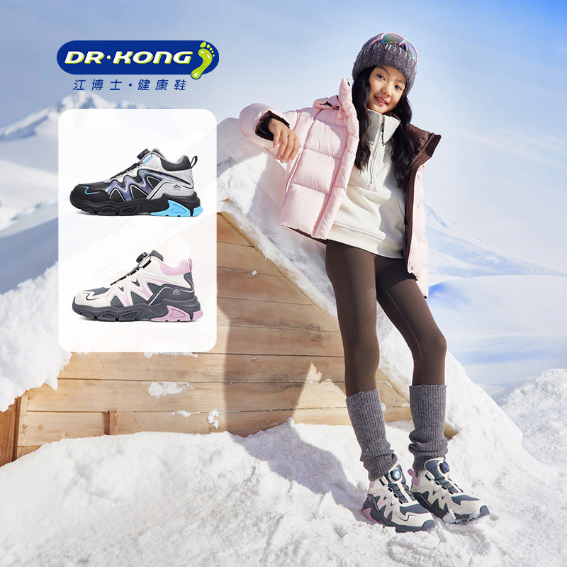 江博士童鞋加绒保暖冬款旋钮扣男女户外儿童运动鞋