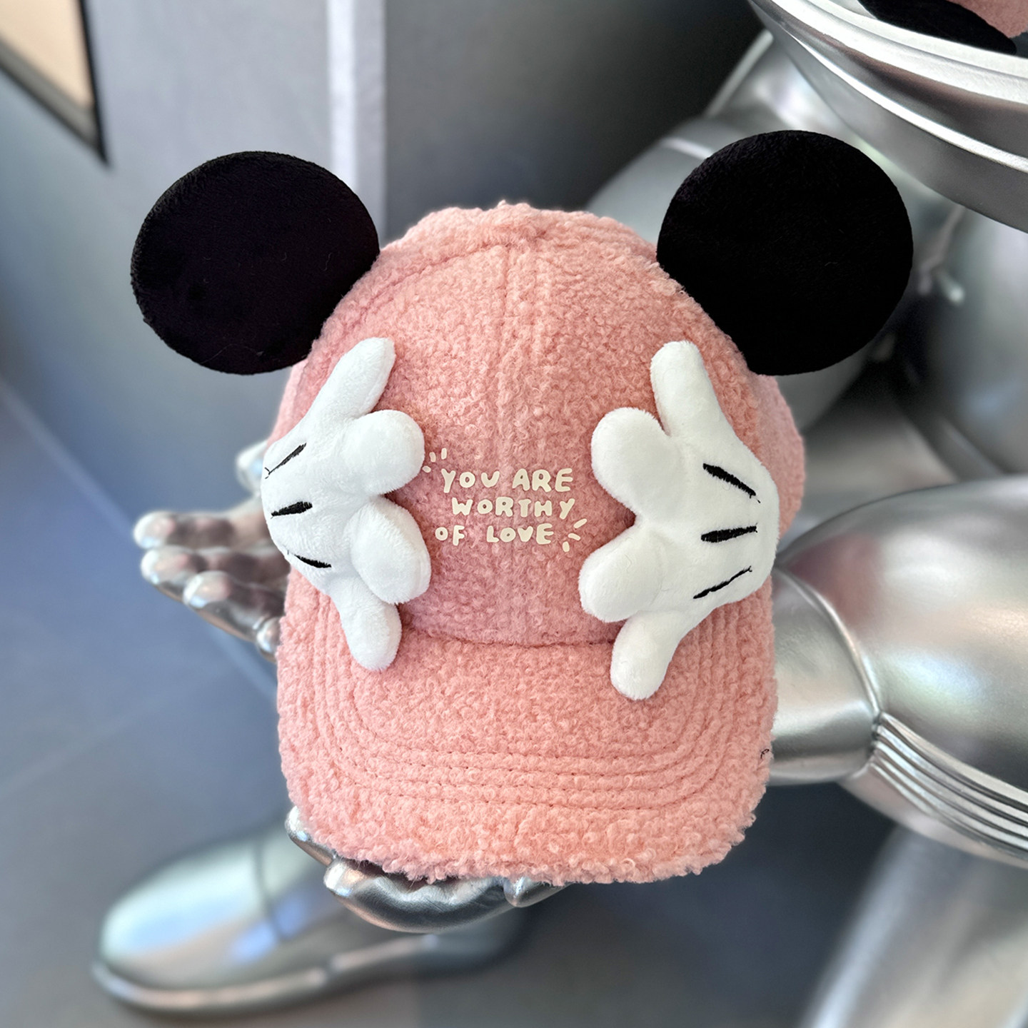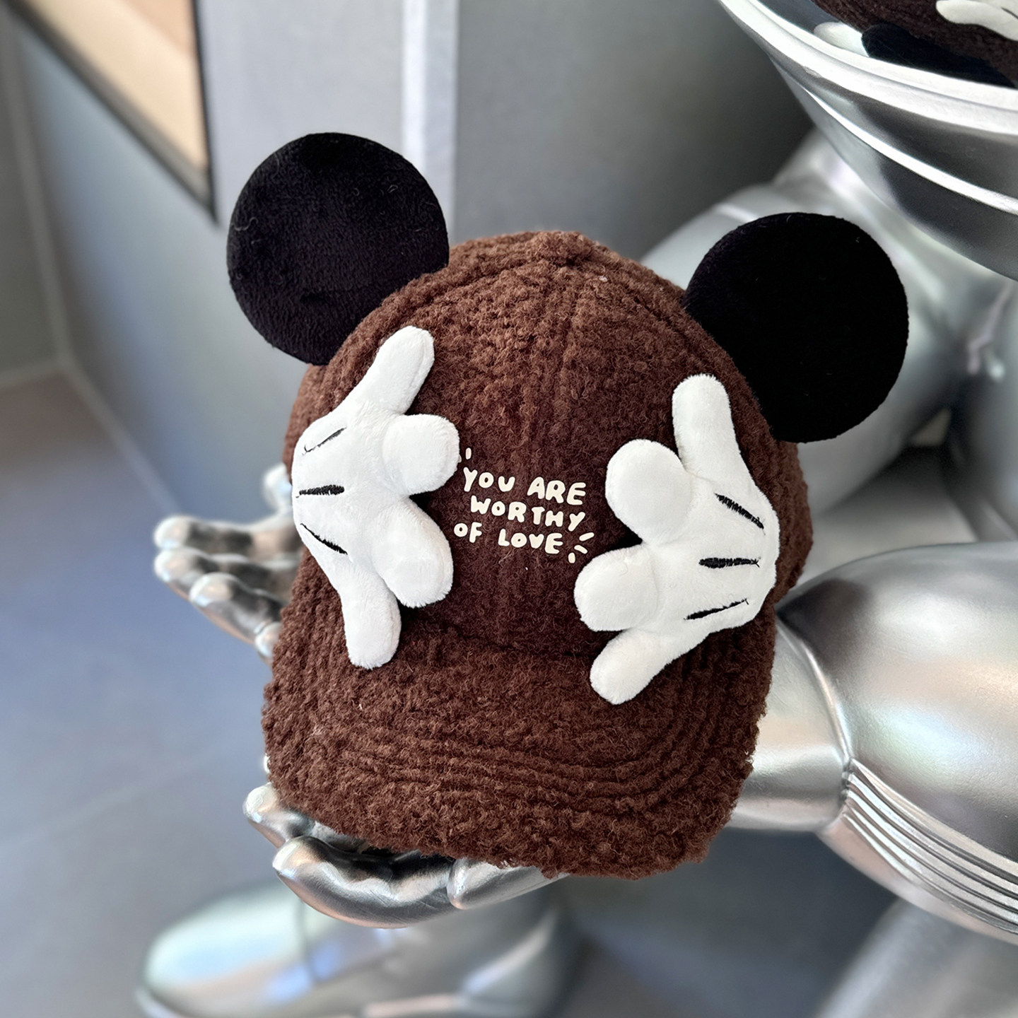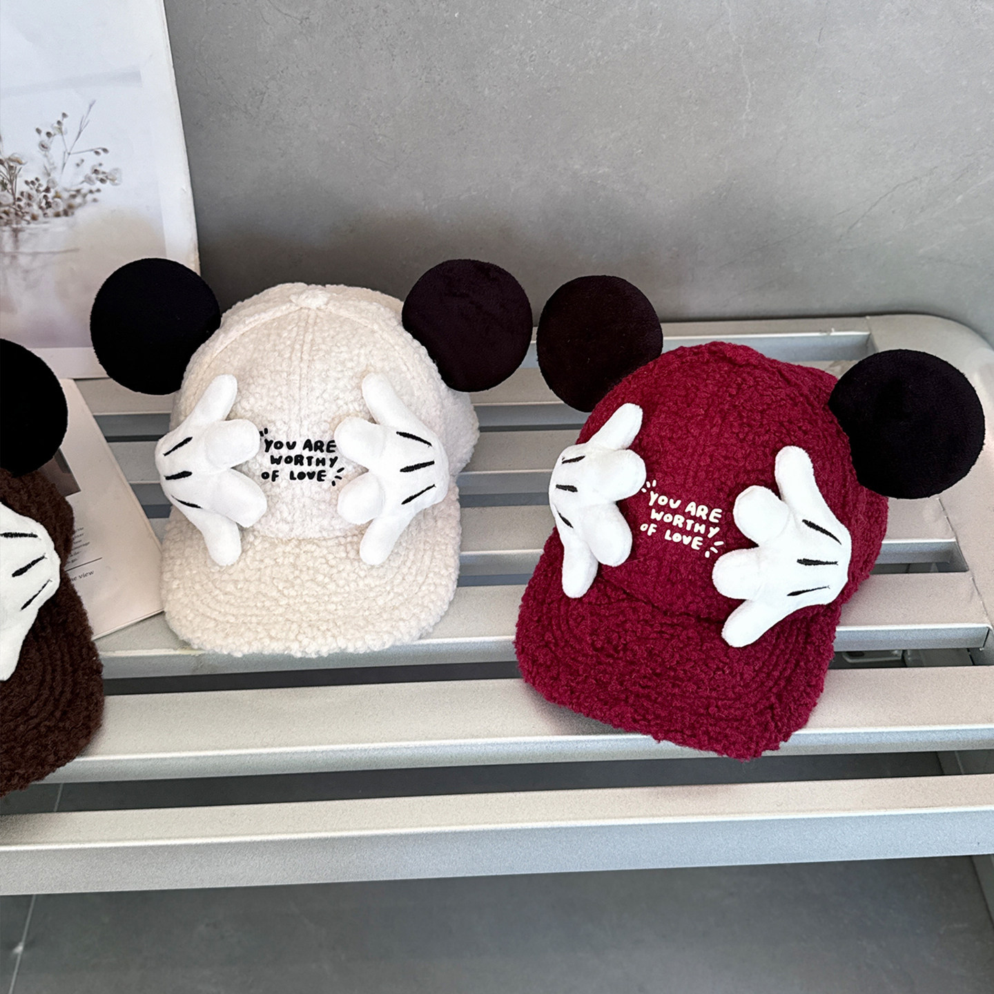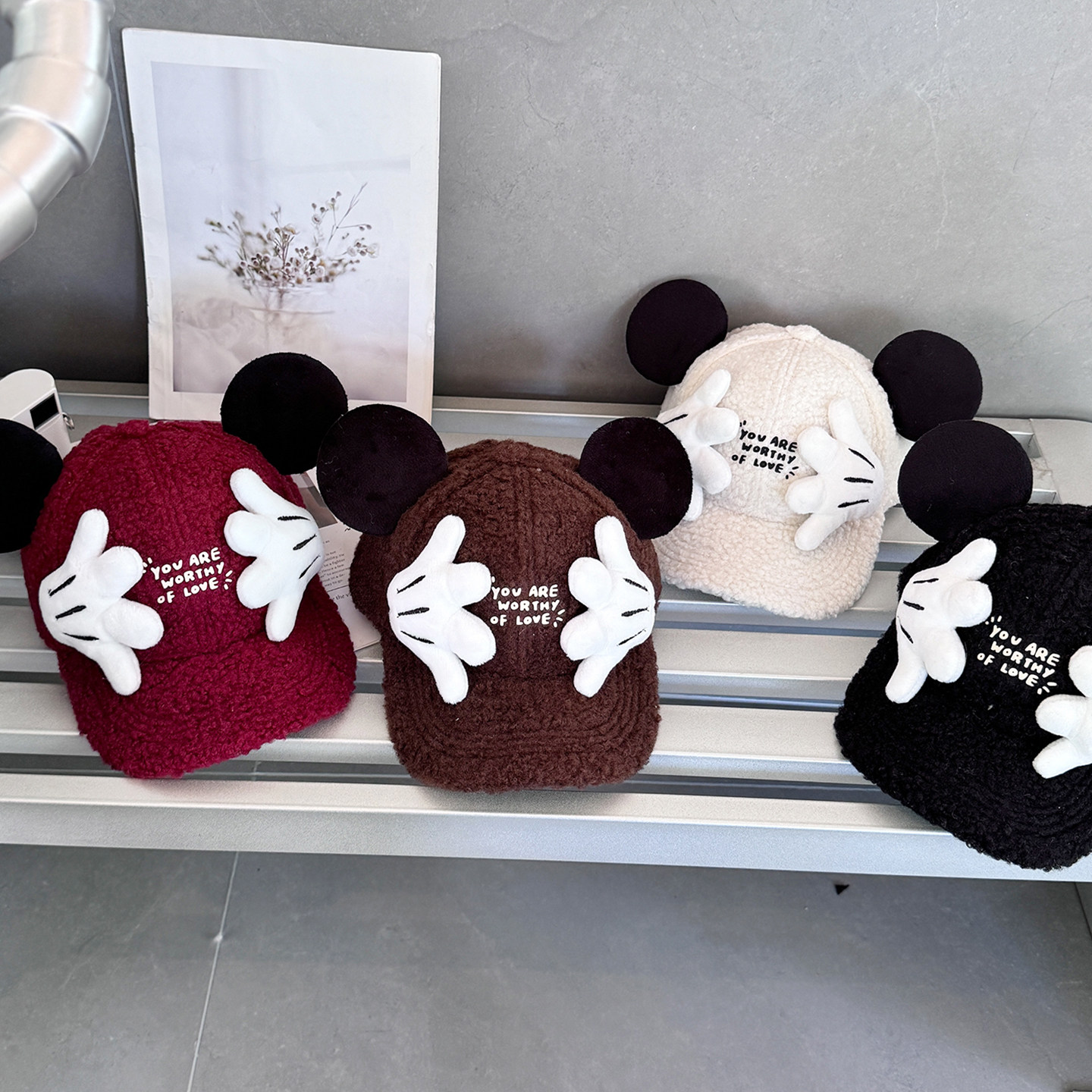 2025新款羊羔毛保暖儿童帽子宝宝米奇鸭舌帽女士可爱卡通棒球帽冬