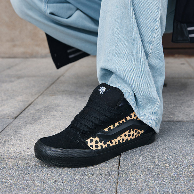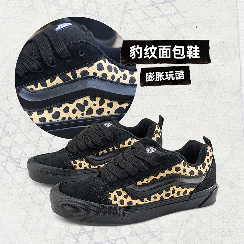Vans范斯官方 Knu Skool黑色豹纹美式复古面包鞋男鞋女鞋板鞋