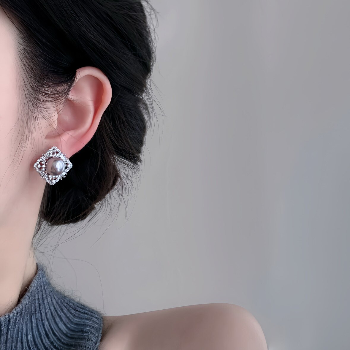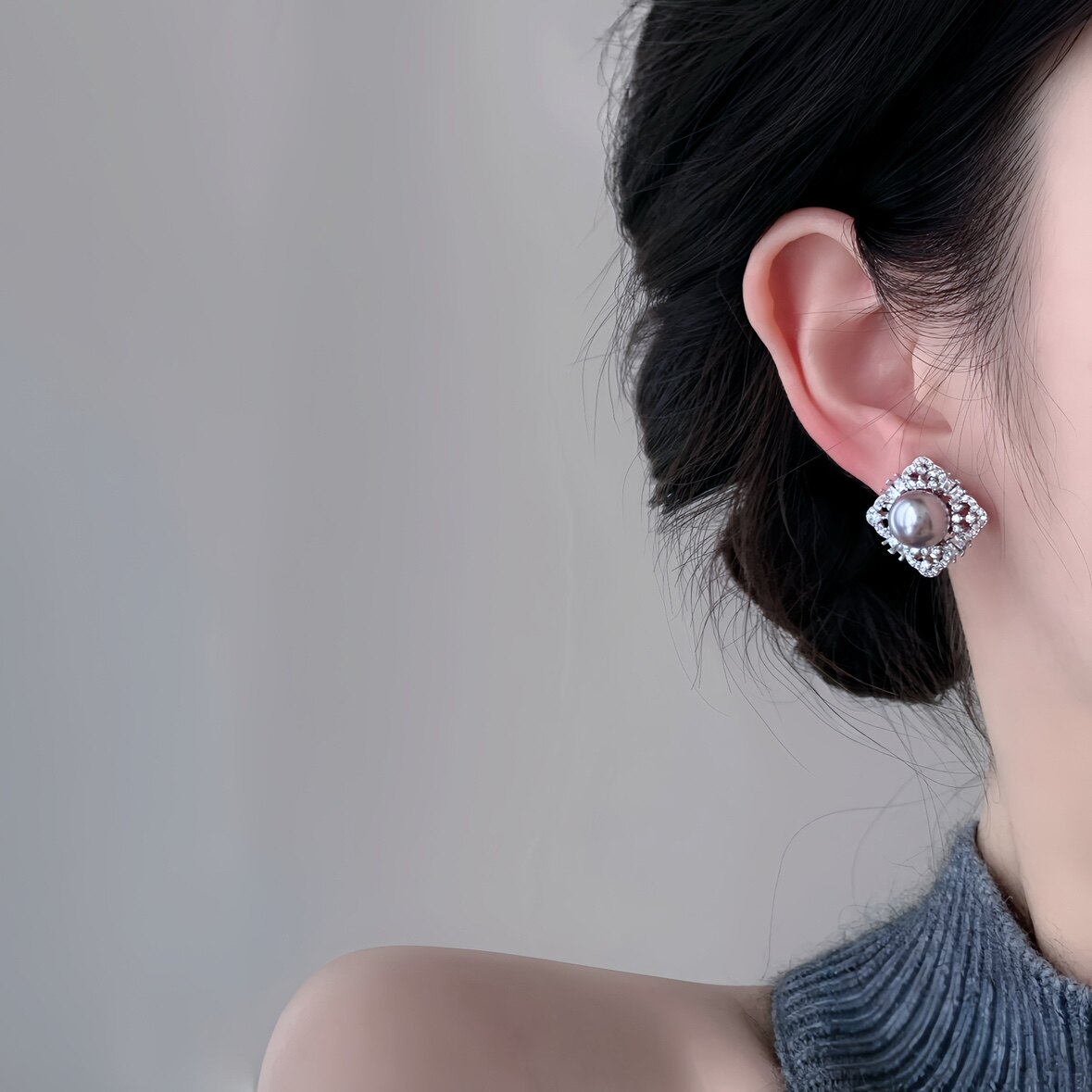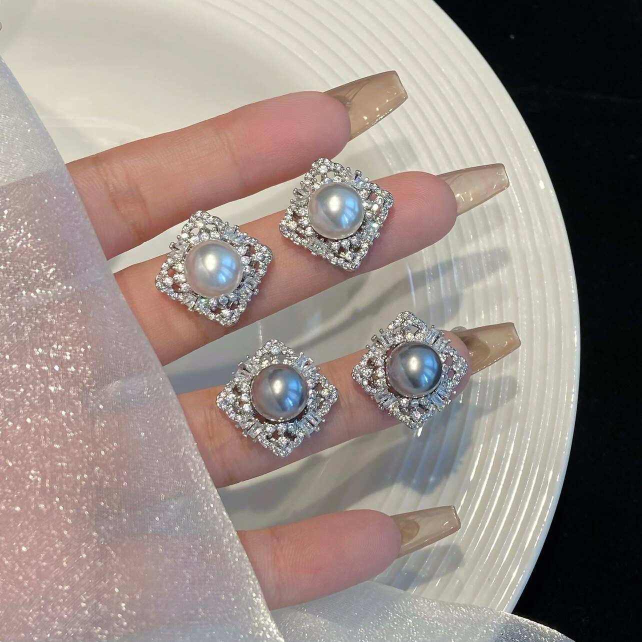 「高光时刻」法式施家珍珠蚊香盘耳夹无耳洞耳环精致银饰锆石耳钉