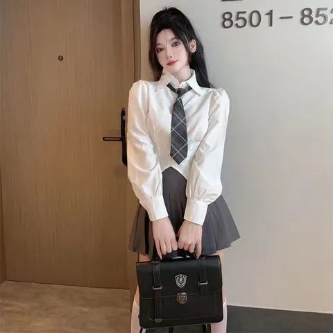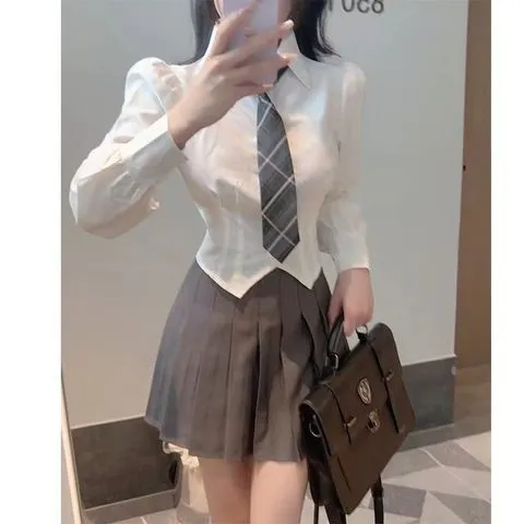 短款白色衬衫学院风长袖纯春秋季女显瘦辣妹收腰衬衣jk制服上衣欲