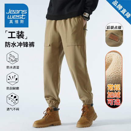 真维斯三防冲锋裤子男女款秋冬季宽松百搭加绒加厚保暖运动休闲裤