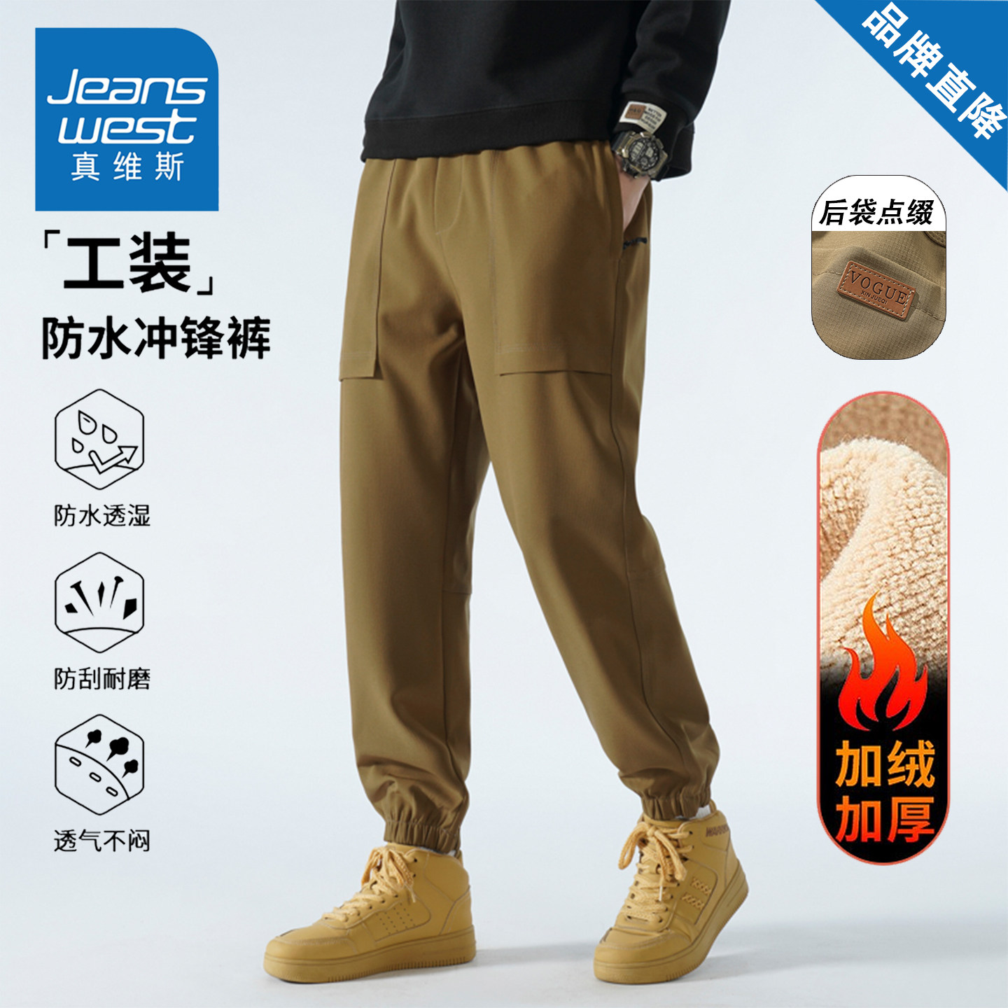 真维斯三防加绒冲锋裤子男女款