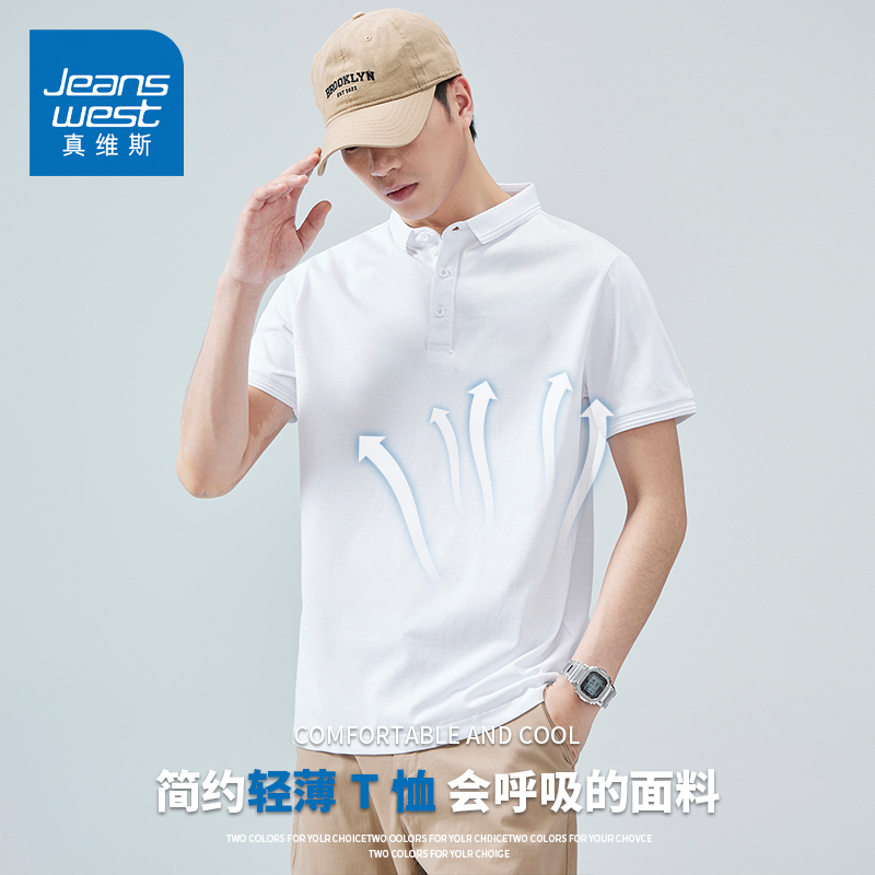KZH真维斯白色短袖Polo衫男夏季薄款宽松百搭速干上衣潮流休闲T恤