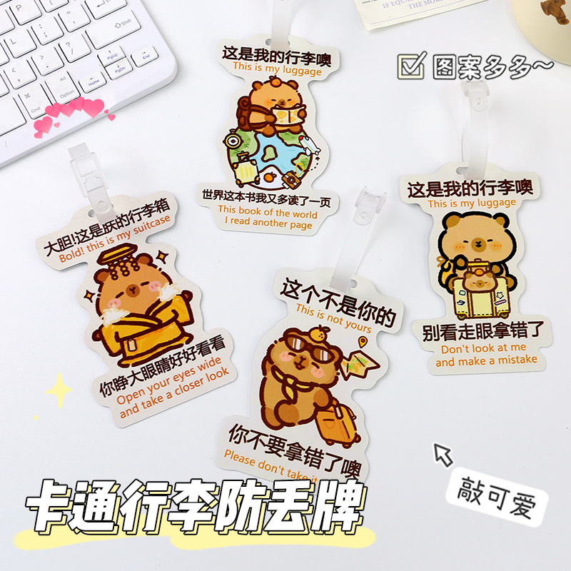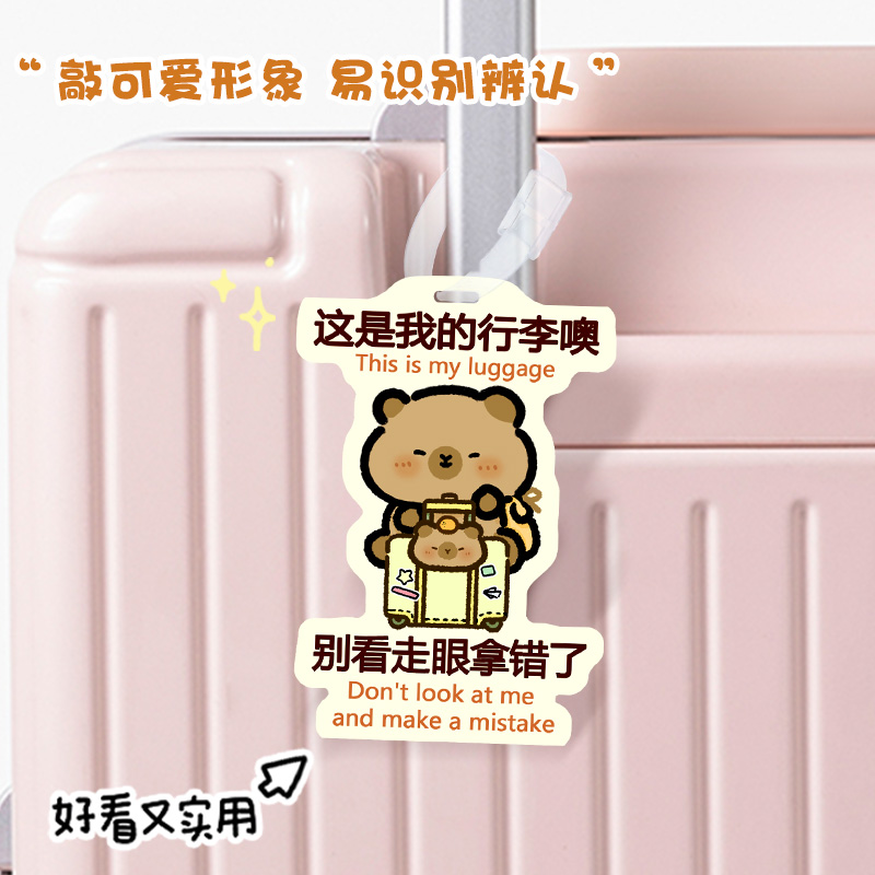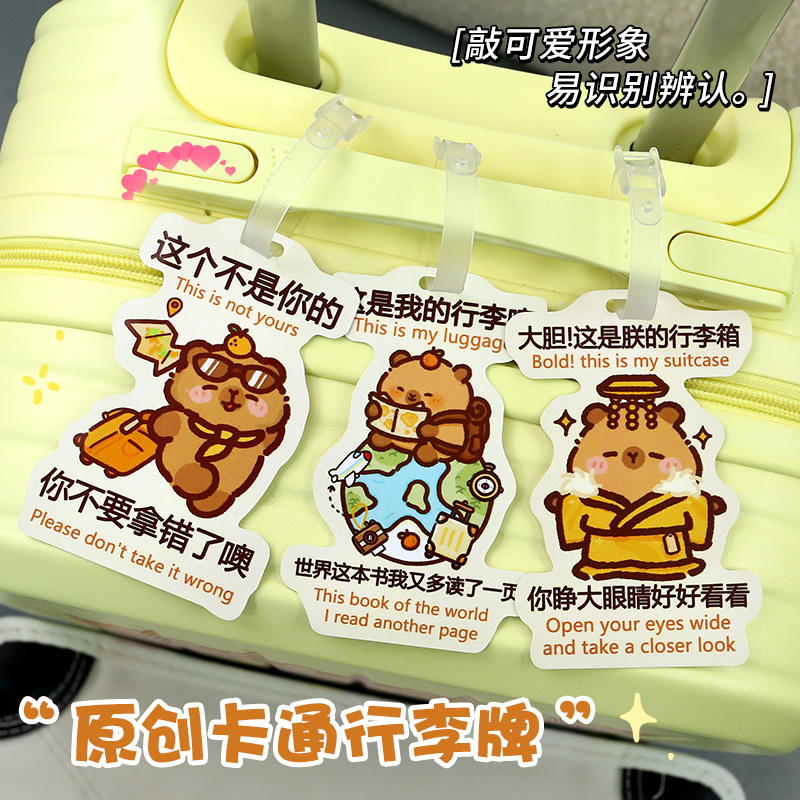 卡皮巴拉行李牌拉杆箱登机飞机牌旅行箱打包带卡通挂牌吊牌托运牌