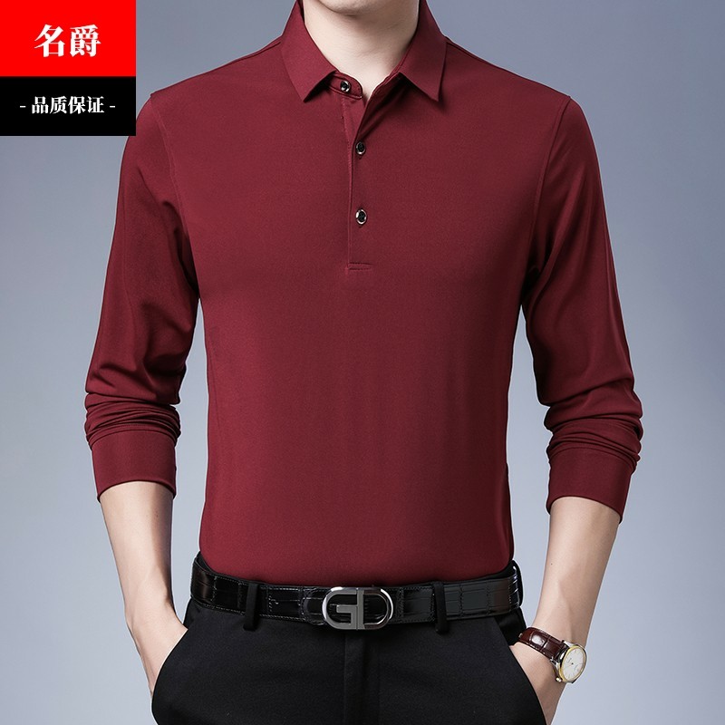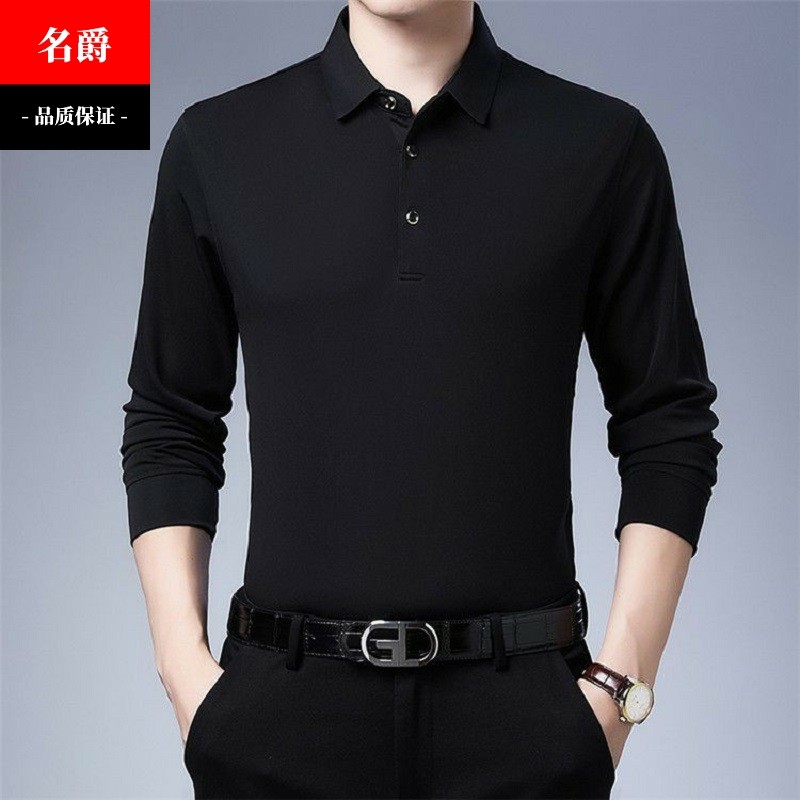 高档拉丁舞服长袖翻领弹力上衣男士国标舞练功服交谊摩登舞蹈T恤