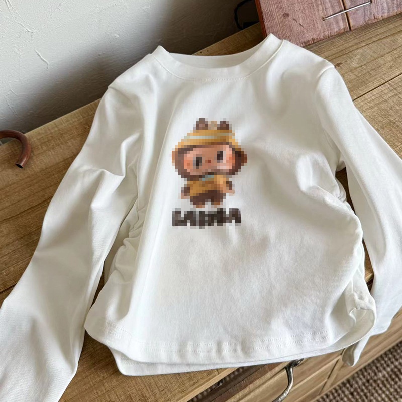 可爱LABUBU卡通印花女童纯棉白色长袖T恤打底衫圆领上衣秋款柔软