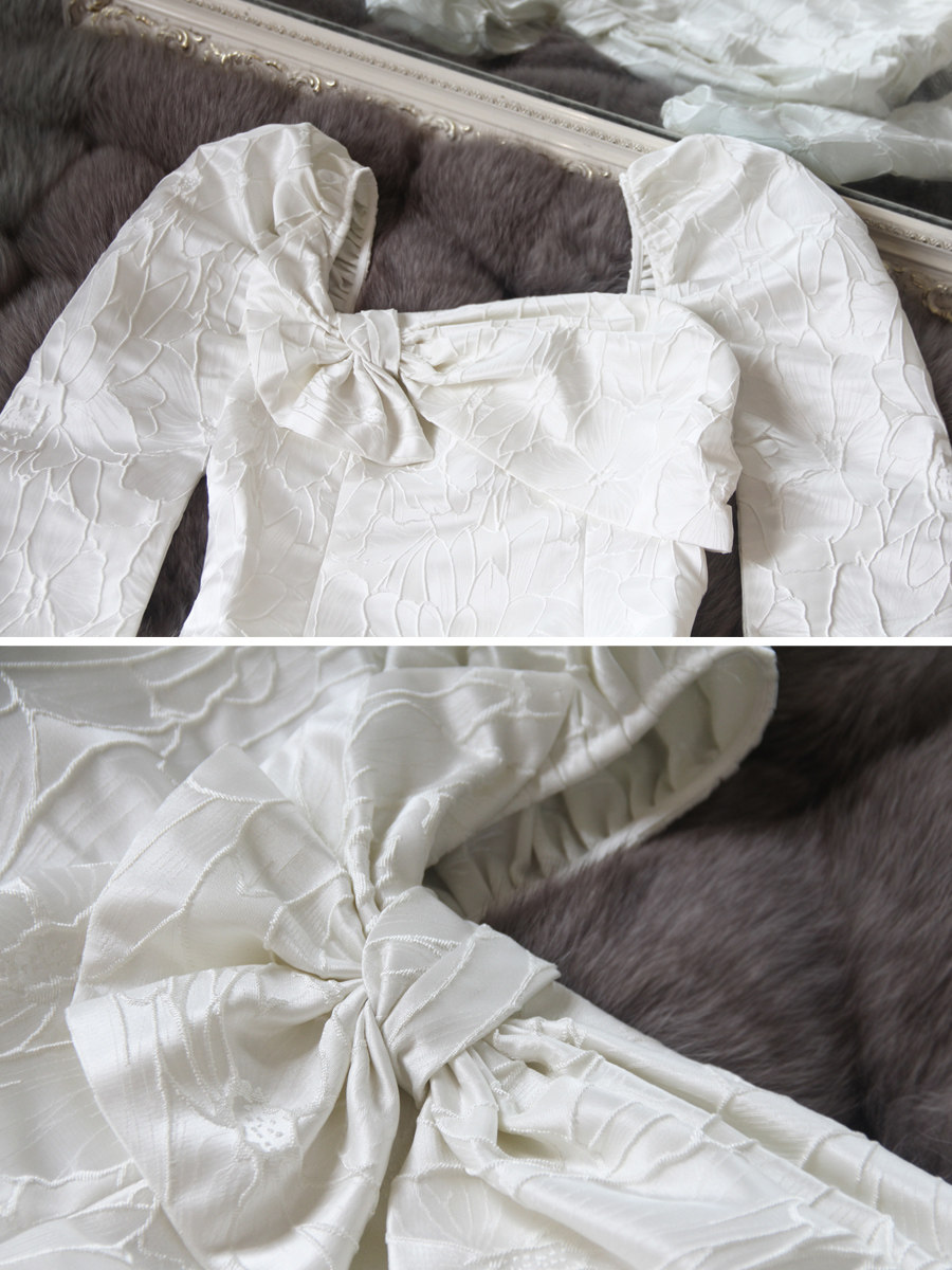 ORIGIN SENSE/知觉之门宽领口立裁设计师风格性感提花高档白色裙