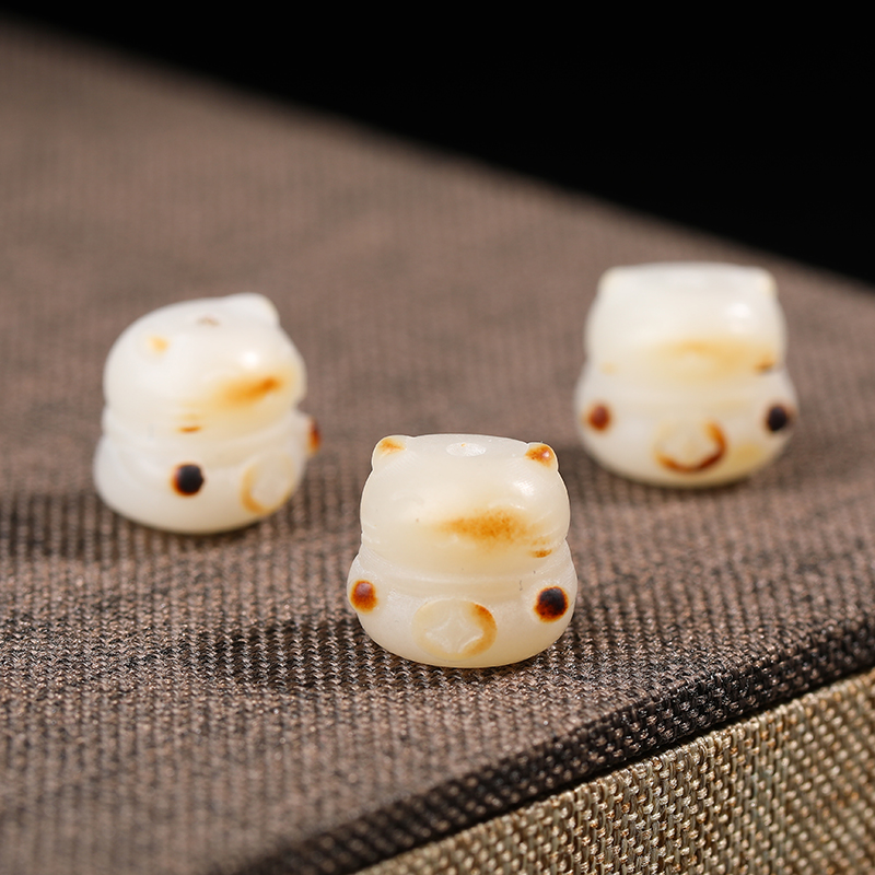 天然白玉菩提猫爪招财猫背云炭烧小兔子老虎绿菩提根手链手串配饰