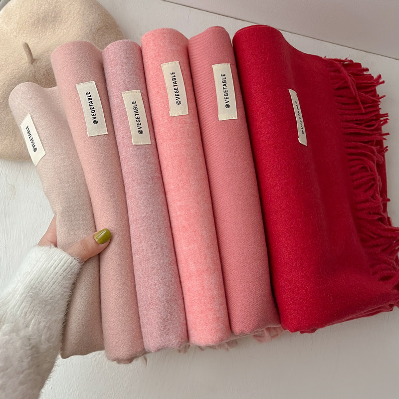 新款仿羊绒围巾冬季女韩版百搭可爱粉红色围脖送男女友礼物礼盒装