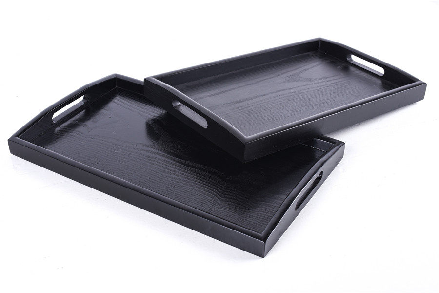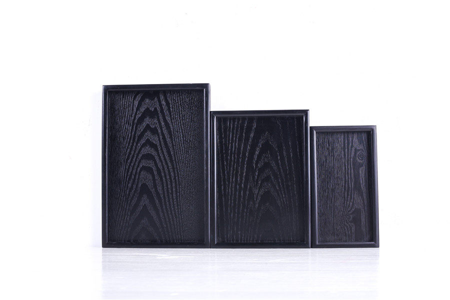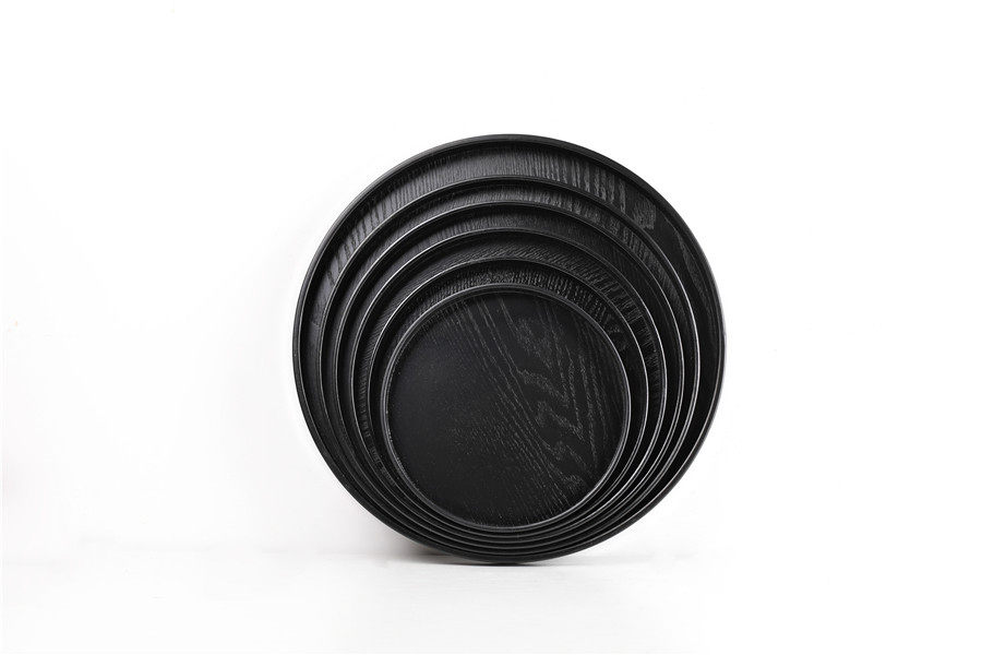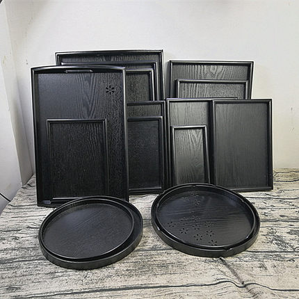 ins黑色盘子日式木质长方形托盘茶盘酒店美容会所水果盘木制圆盘