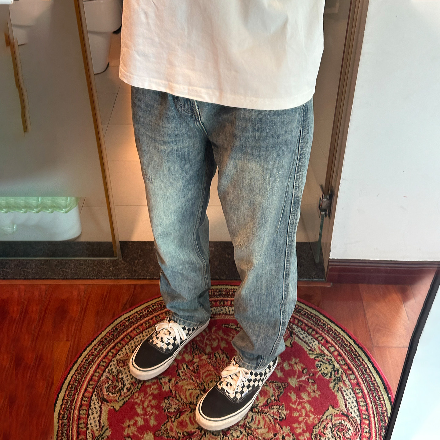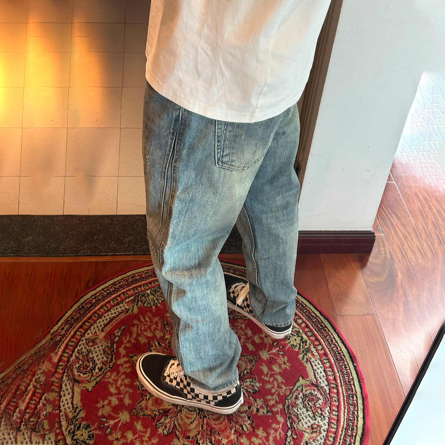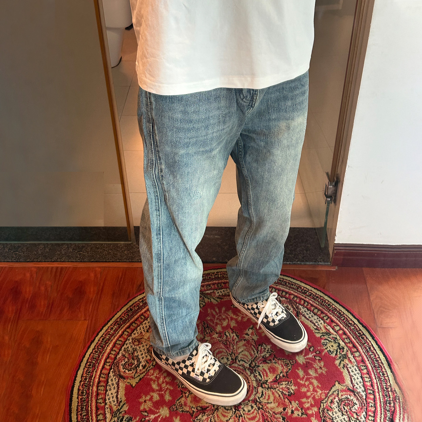 裤子男秋冬新款破洞牛仔裤男宽松直筒潮牌水洗浅色阔腿长裤休闲裤