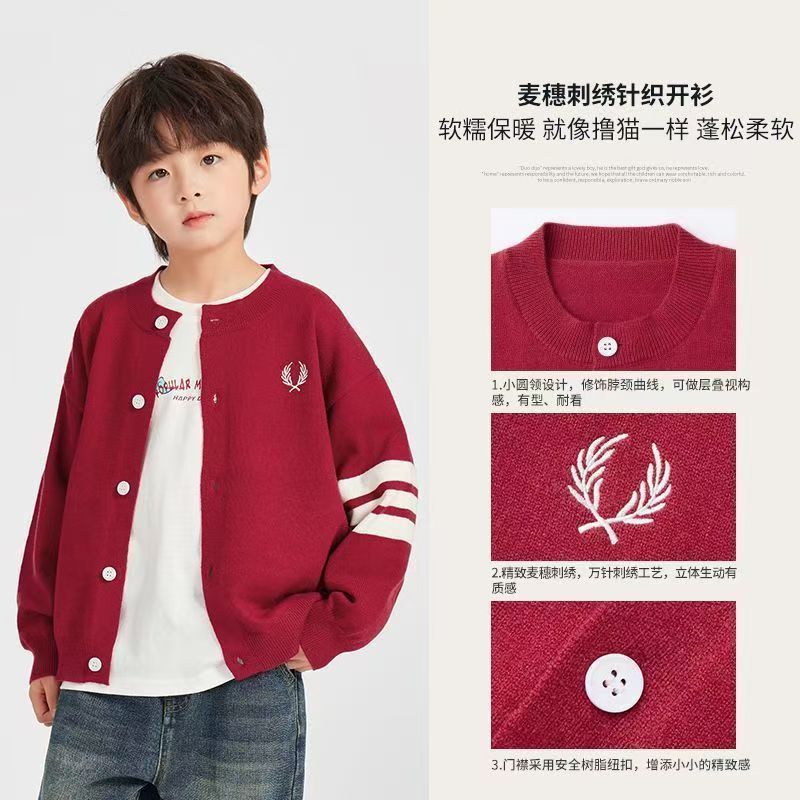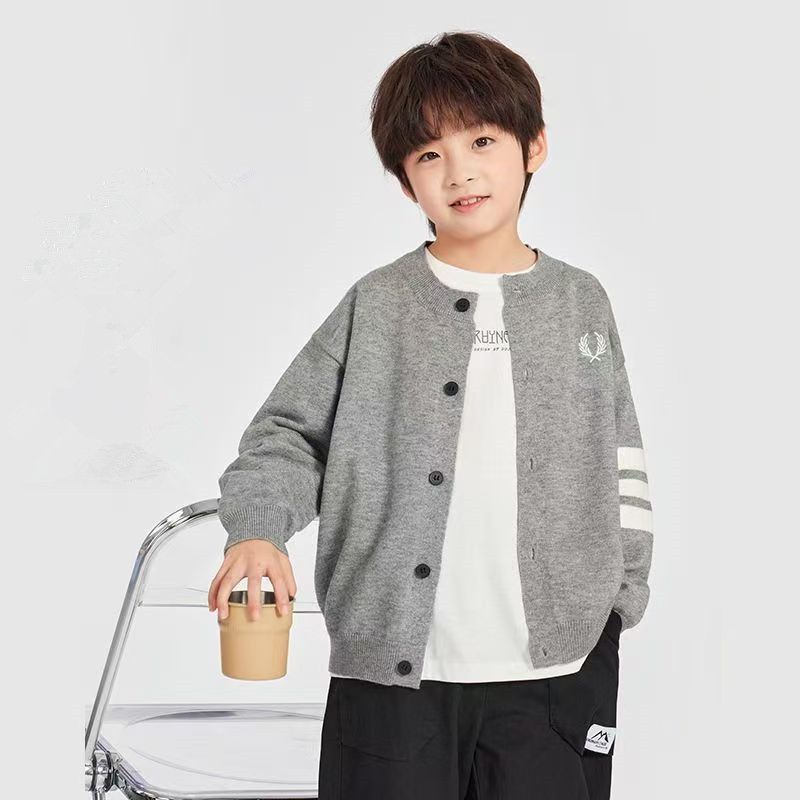 儿童针织开衫男童洋气毛线衣潮毛衣外套2025新款春秋款中大童男孩