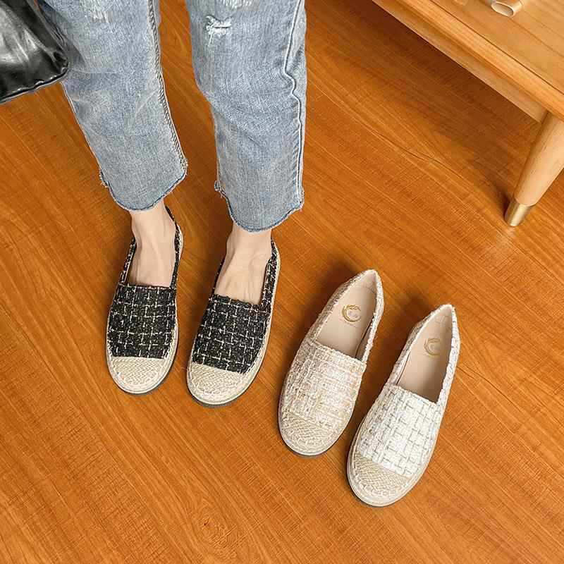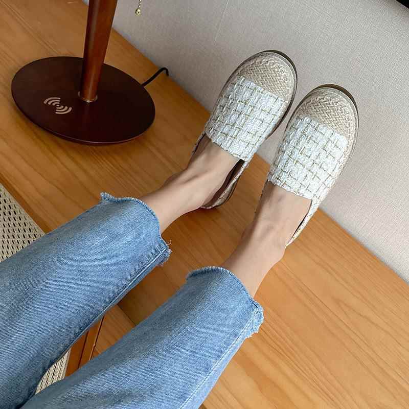 渔夫鞋女小香风2025新款春夏季平底豆豆单鞋一脚蹬懒人厚底乐福鞋