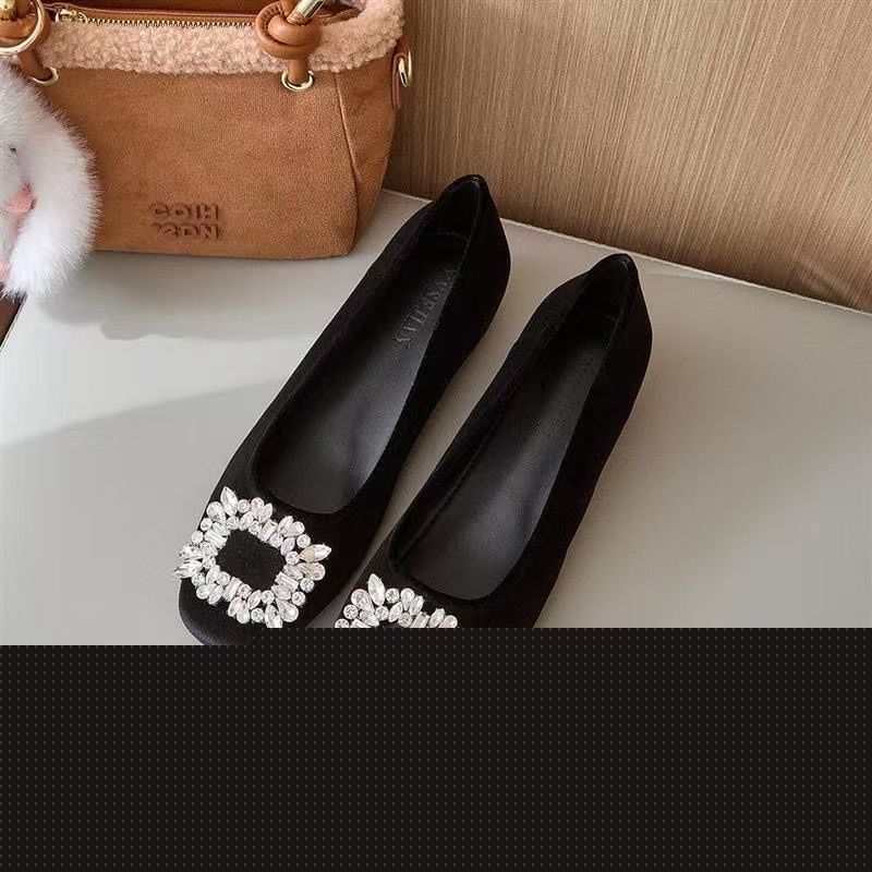 平底高级感方头水钻单鞋女鞋子2025年新款夏季黑色通勤豆豆鞋