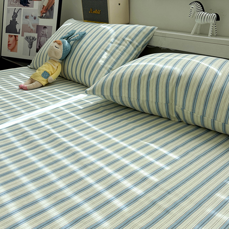 高档加厚老粗布条纹英伦蓝纯棉床单单件100全棉床笠枕套四季可用