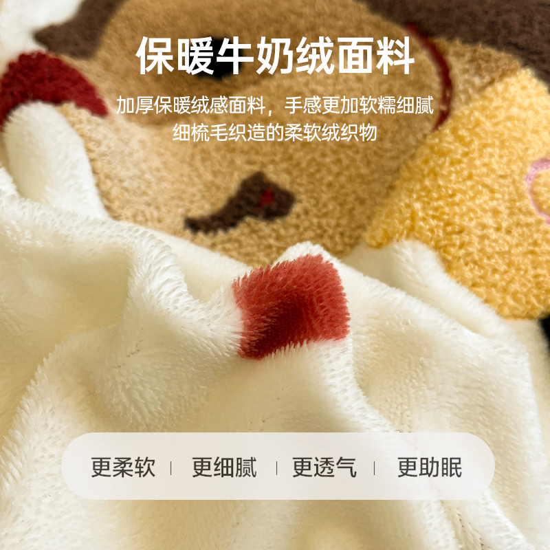 无印良品儿童牛奶绒毛巾绣四件套