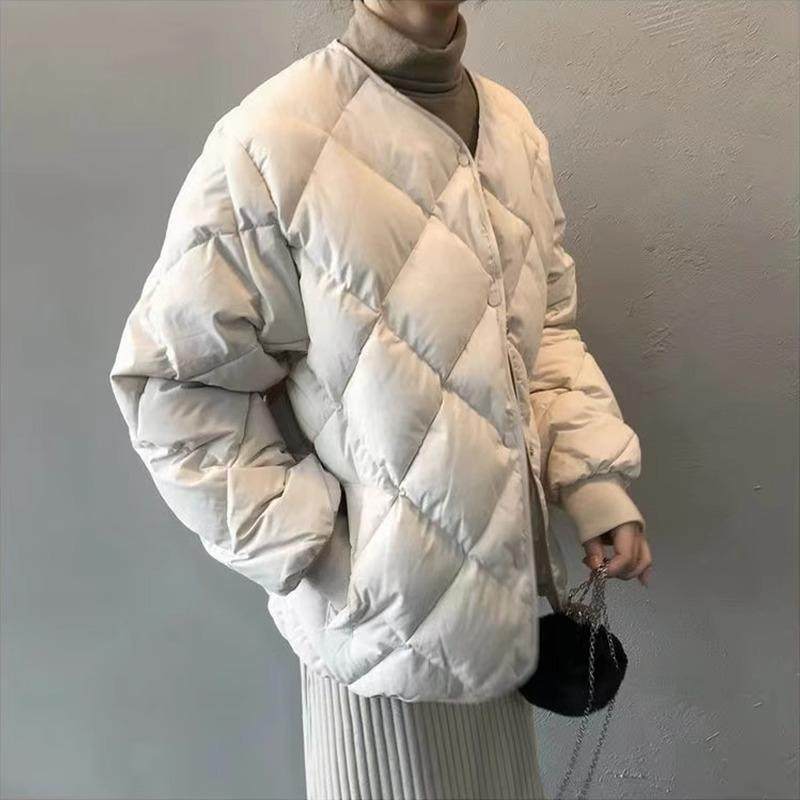 300斤胖mm大码女装港风菱形格棉服棉衣女宽松显瘦百搭棉袄外套潮