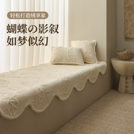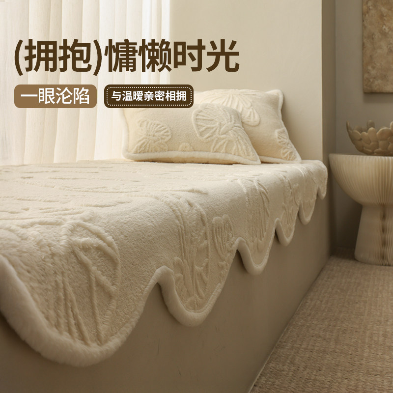 奶油风飘窗垫母婴级窗台垫2025新款卧室阳台台面垫毛绒坐垫毯子冬