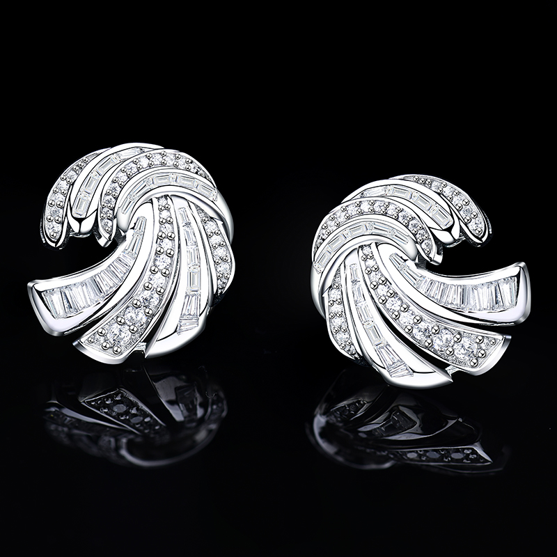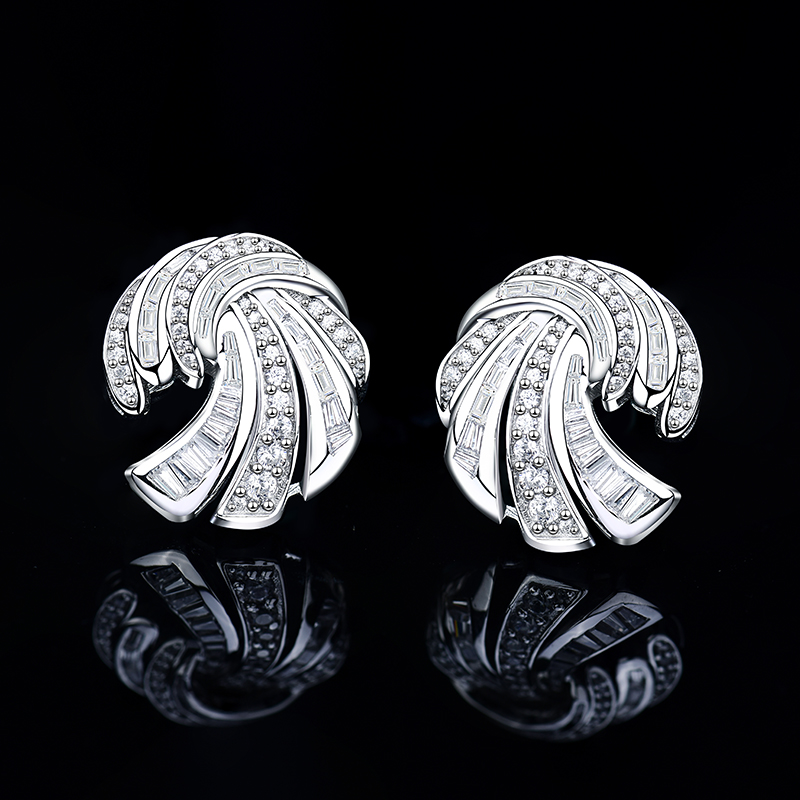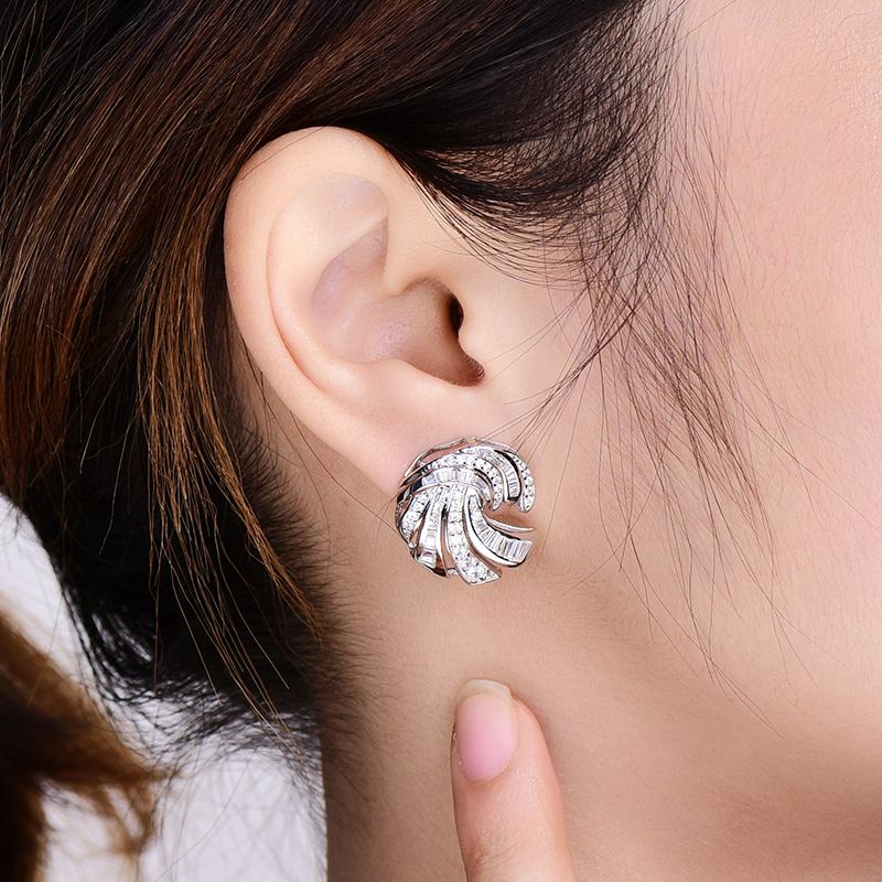 卓蝶珠宝纯银镀白金豪华气质款满钻耳钉女圆舞曲职场优雅气场耳环